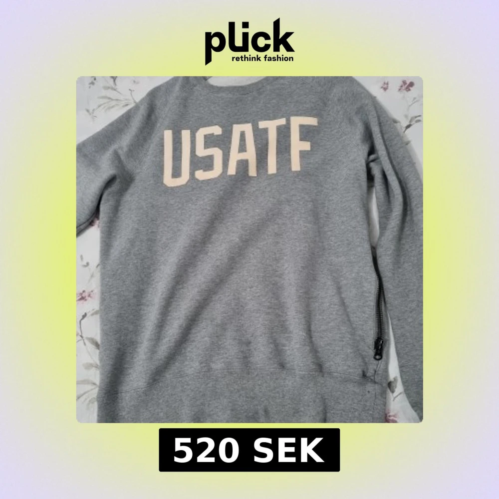 Grå sweatshirt från Nike med USATF-tryck framtill.. Mjuk insida och ribbade muddar. Perfekt för en sportig look. knappt använd.