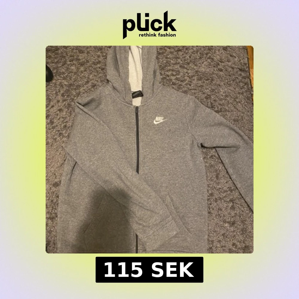 Säljer en grå hoodie från Nike i storlek XL. Tröjan har huva, hel dragkedja framtill och två fickor. Klassisk Nike-logga i vitt på bröstet. Perfekt för chill eller träning, standard fit och mjukt material.
