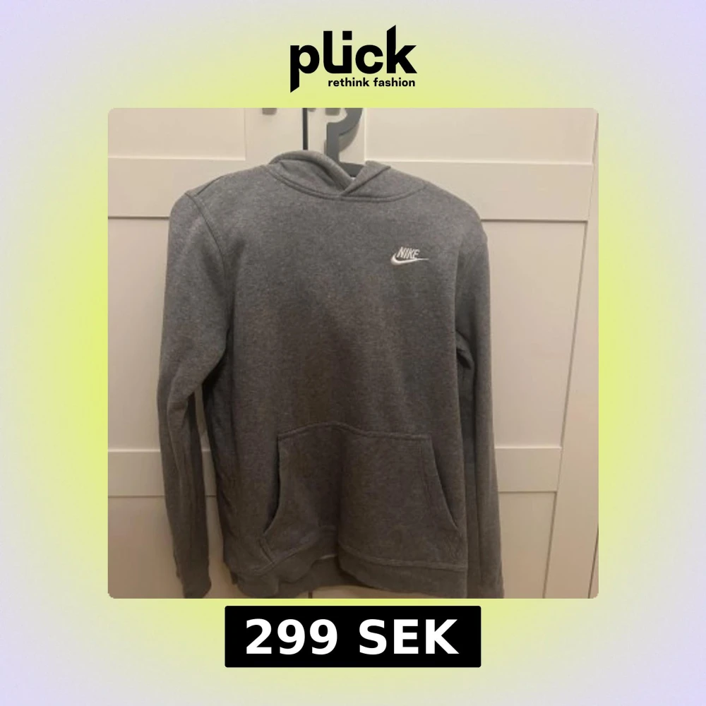 Säljer en klassisk grå hoodie från Nike i storlek XL. Tröjan har huva, magficka och Nike-logga broderad på bröstet. Perfekt för chill dagar eller när du vill ha en enkel och snygg look.