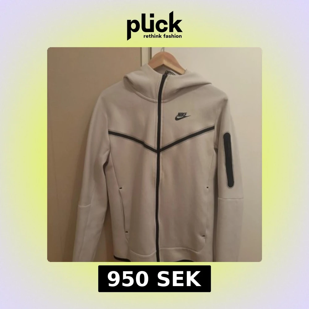 Nike Tech Fleece hoodiejacka i beige med svarta detaljer och dragkedja. Jackan har huva, svarta linjer över bröstet och ärmen samt en praktisk ficka med dragkedja på ärmen. Perfekt för en sportig och clean look. Ordinarie pris 1499 kr enlig unisport.