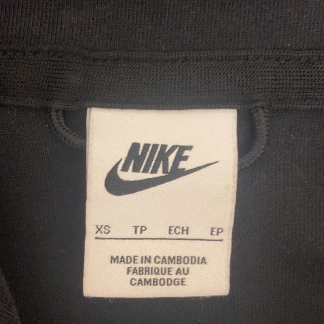Säljer en snygg grå och svart hoodie från Nike med dragkedja och huva. Den har en vit randdetalj över bröstet och Nike-loggan på vänster sida. Perfekt för en sportig look!