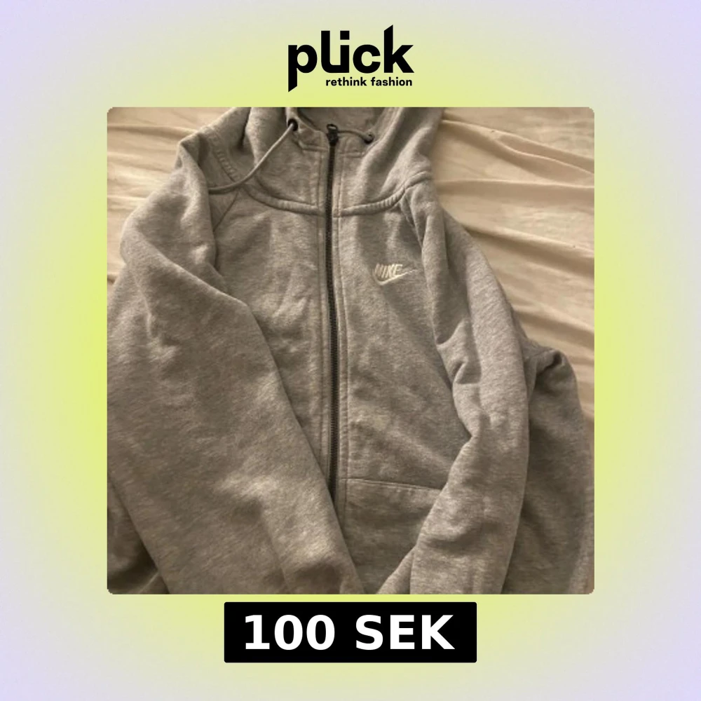 Säljer en grå hoodie från Nike i storlek XS. Tröjan har huva med snörning, hel dragkedja framtill och två fickor. Nike-loggan är broderad i vitt på bröstet. Perfekt för chill eller träning, mjukt material och klassisk look.