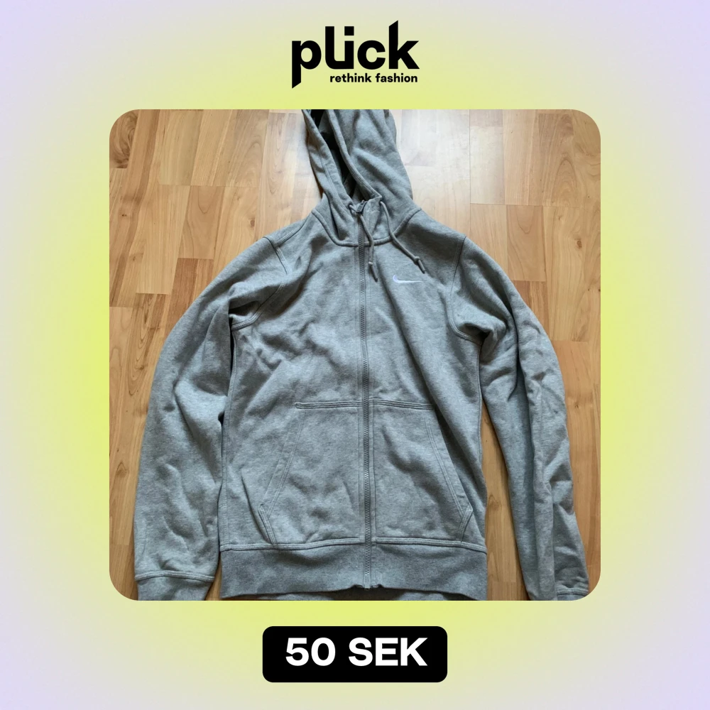 Säljer en grå hoodie från Nike i storlek M. Den är superbekväm och perfekt för både vardag och träning. Hoodien har en dragkedja framtill och en klassisk Nike-logga på bröstet. Den har långa ärmar och en praktisk huva med dragsko. Perfekt för höst och vår!