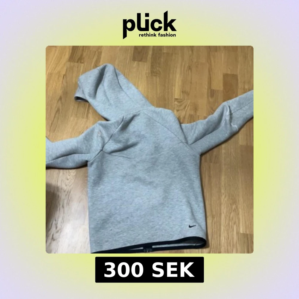 Säljer en grå hoodie från Nike med svarta detaljer och dragkedja framtill. Tröjan har huva, två fickor och en extra ficka på ena ärmen. Perfekt för en sportig och avslappnad stil. Den har bara lite skråmor på armbågarna annars är den helt okej
