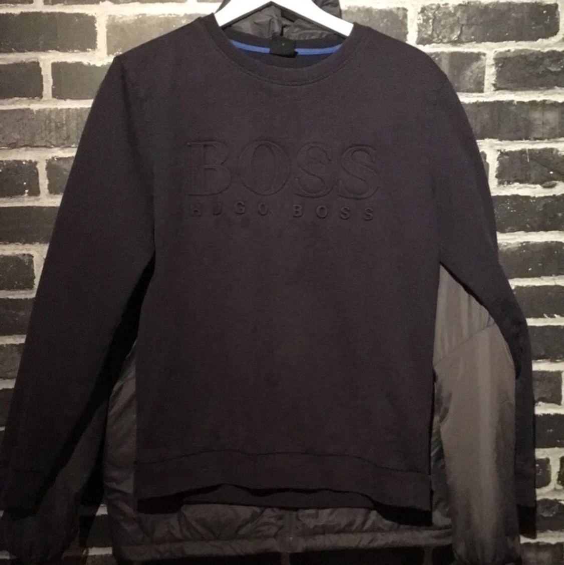 Tjena! Säljer denna mörkblå Hugo boss tröja köpt på Nk förra året! Har ej kvitto kvar men QR borde bevisa äkthet😅 Den har 2 hål dom dock är lagade (de vart väldigt små hål) inte så synliga (höger arm) Storlek S.. skick 7/10 nypris.. 1000kr😃💯 byten kan vara intressant