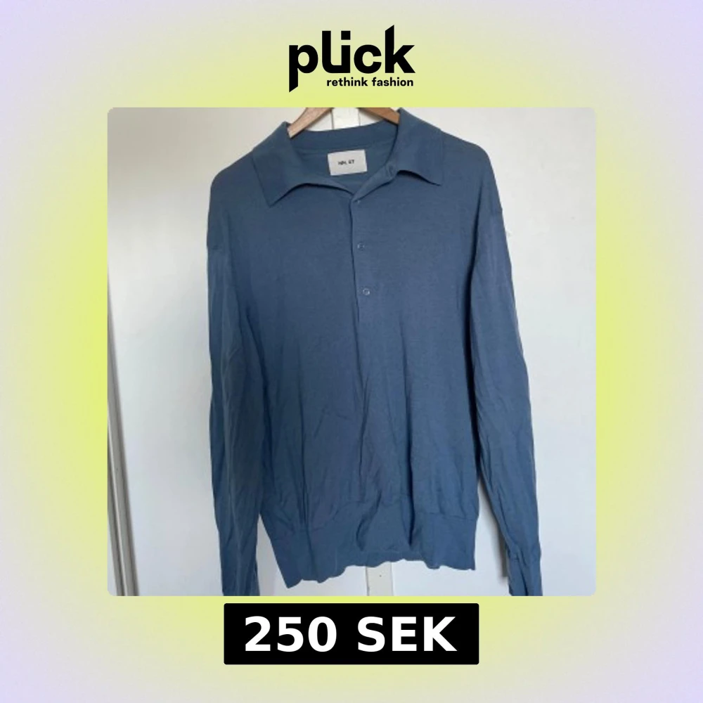 Säljer en stilren blå långärmad pikétröja från NN07 med klassisk krage och knäppning framtill. Tröjan har en mjuk känsla och ribbade muddar vid ärmslut och nederkant. Perfekt för en avslappnad men snygg look.