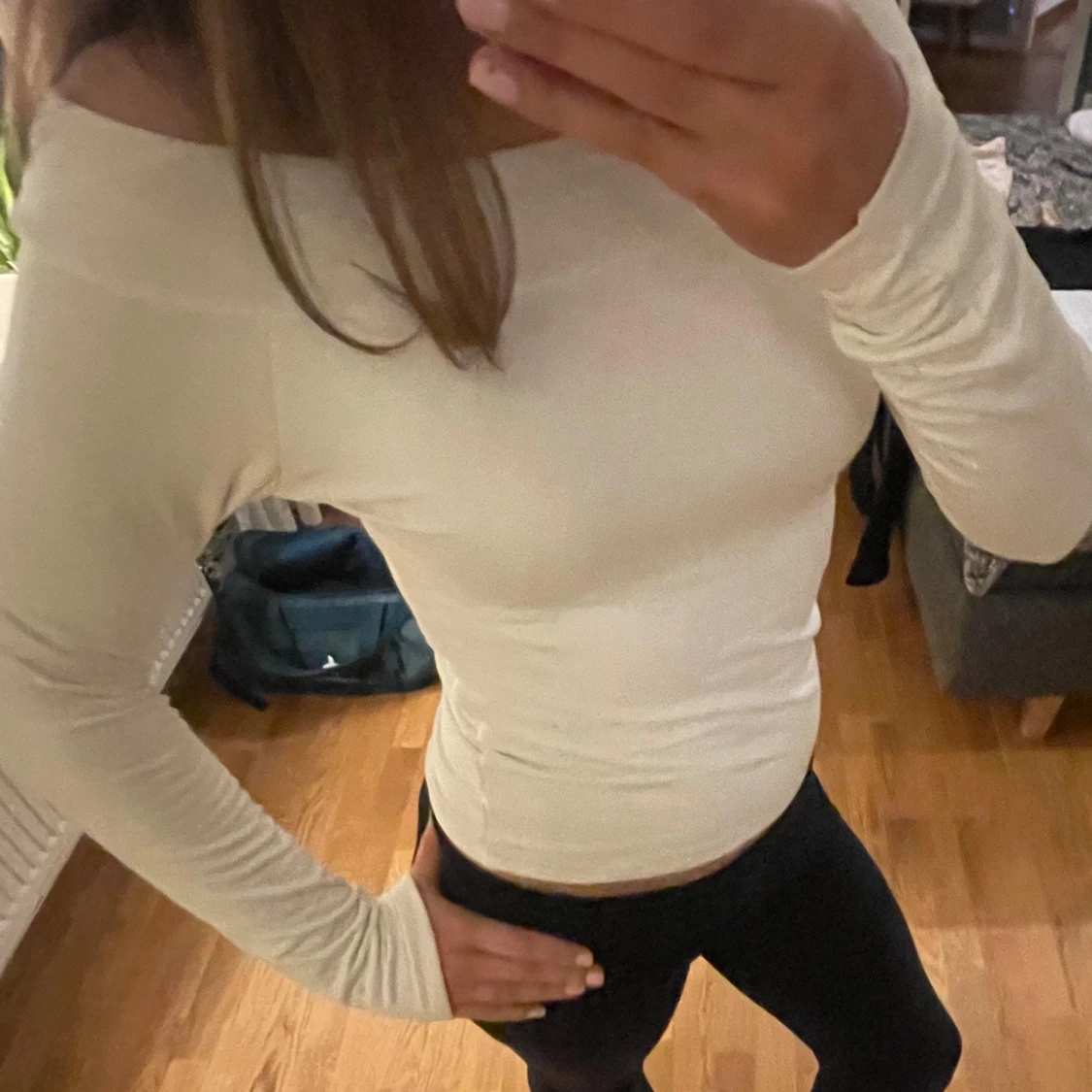 Säljer en stilren vit offshoulder topp från BikBok. Toppen har långa ärmar och en tight passform har den. Perfekt för vardag!!! fick den i present men har inte hittat andvändning☺️☺️