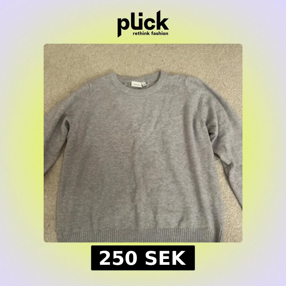 Säljer en stilren grå tröja från VILA i storlek XL. Tröjan är långärmad och har en ribbad rund halsringning samt ribbade muddar vid ärmslut och nederkant. Perfekt för kyligare dagar.