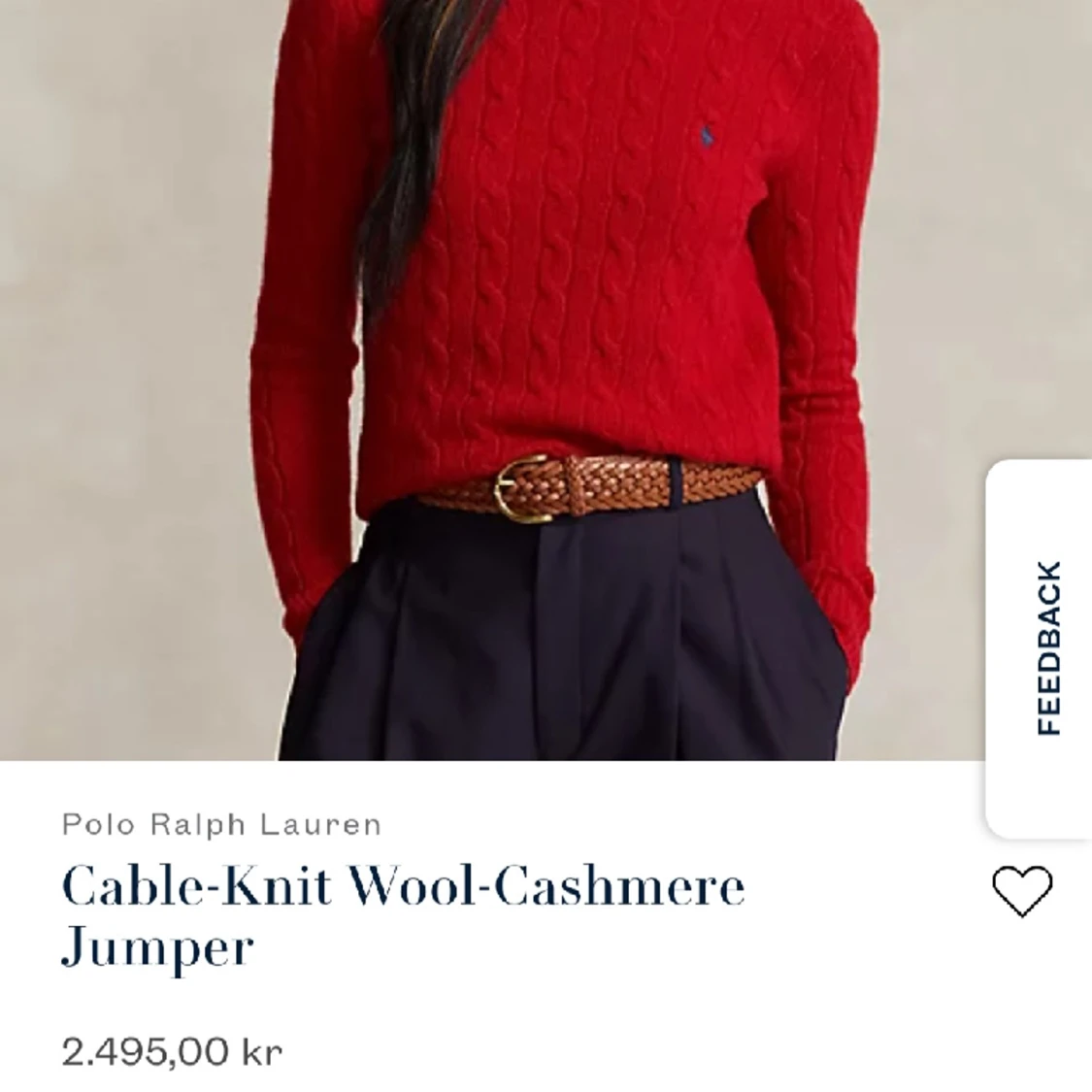 Cable-Knit Wool-Cashmere Jumper i röd. Helt ny oanvänd. Säljer då storlek inte passar. Ny pris 2495 kr Tröjan är storlekar L men jag tycker den är mer som storlek M. Jätte skön tröja annars super mjuk. Kommer från en djurfri och rökfri hem.