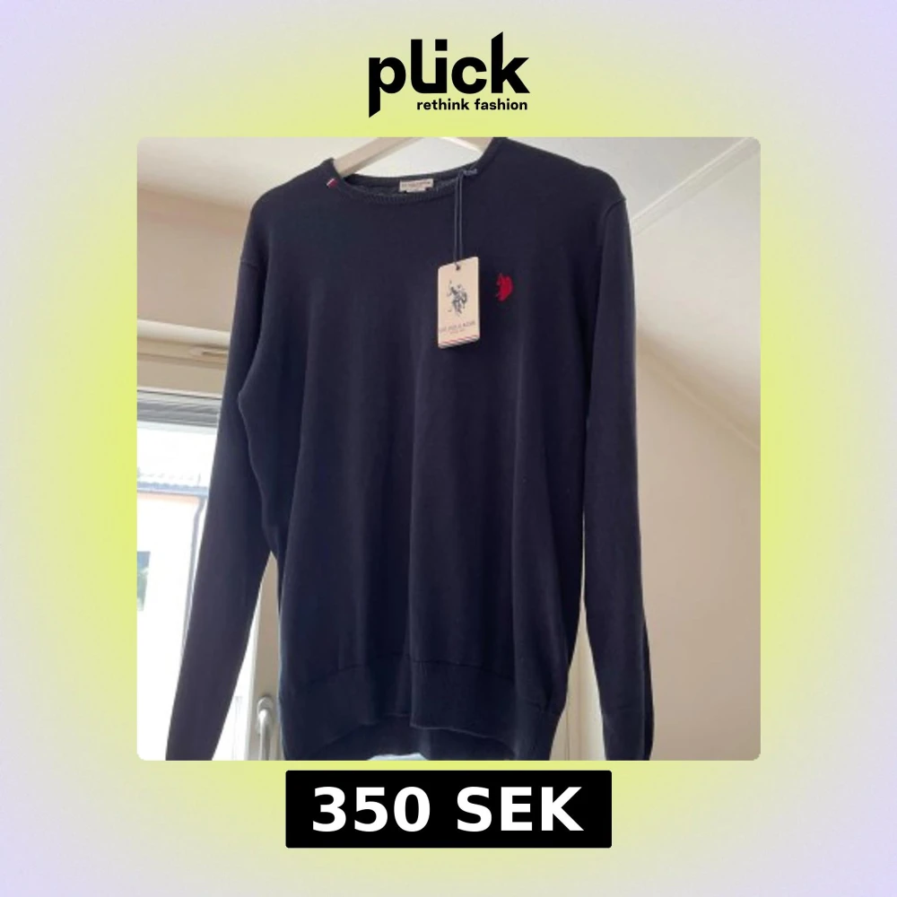 Oanvänd blå stickad tröja. Nypris ca 500kr. Pris 350kr eller bud
