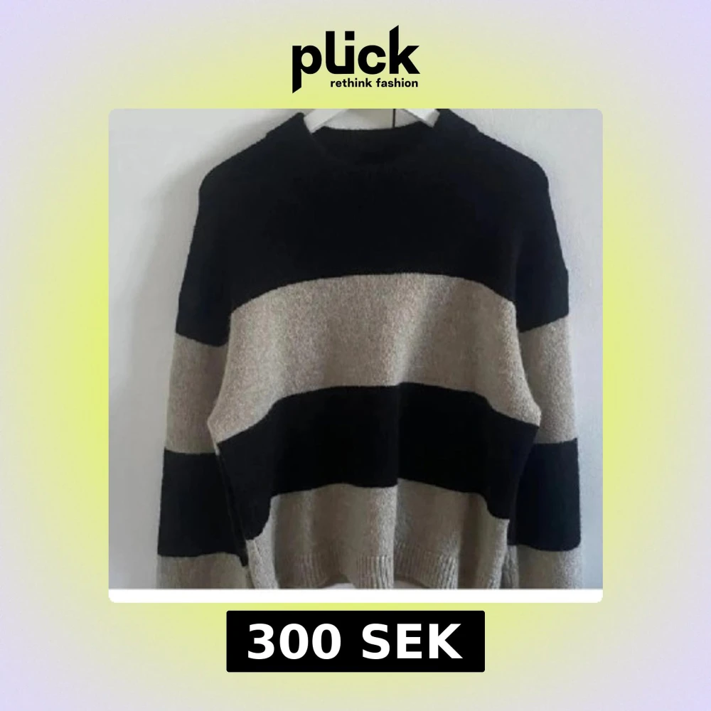 INTRESSEKOLL! Säljer jättefin stickad tröja i svart och beige randig, lite oversize i storlek xs. Från Gina tricot i Premium Quality. Aldrig använd men ett litet märke på ena ärmen (bild 3). Köparen betalar frakten!