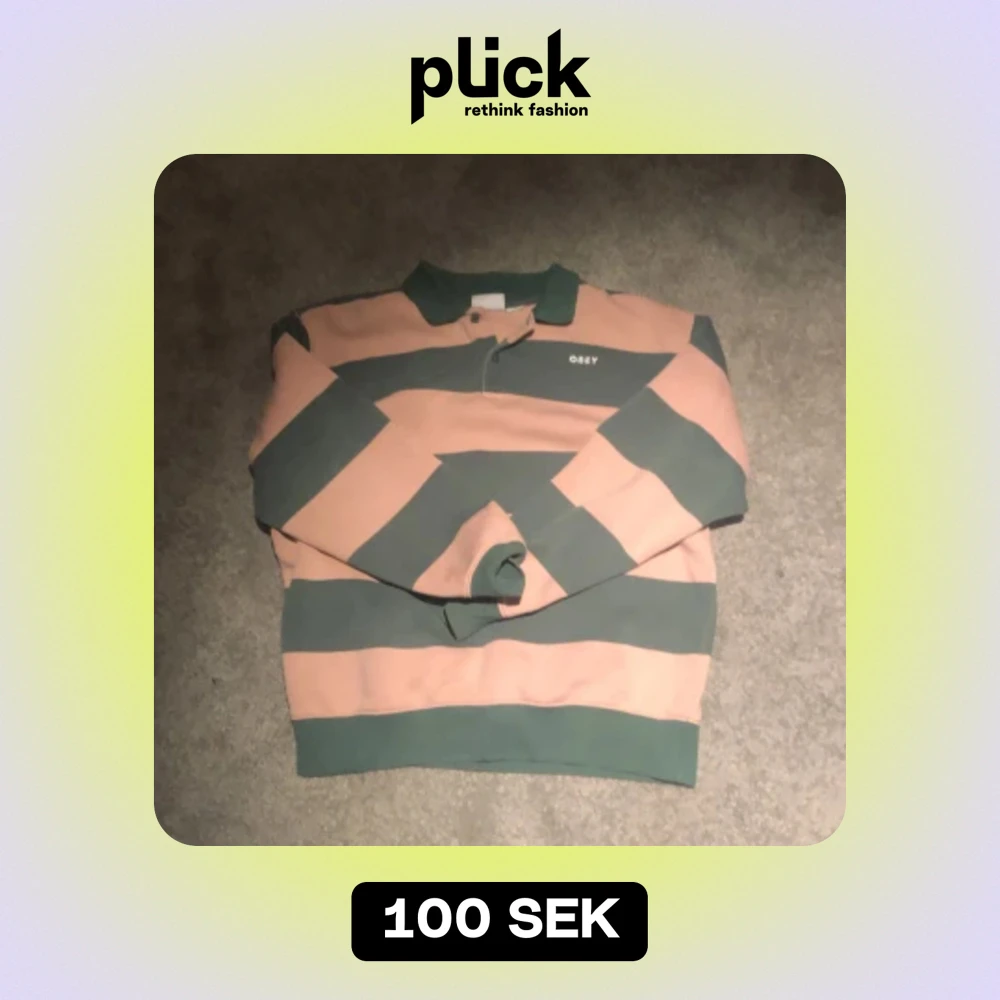 En cool Obey tröja med rosa och gröna ränder, säljer den för att den var för stor.