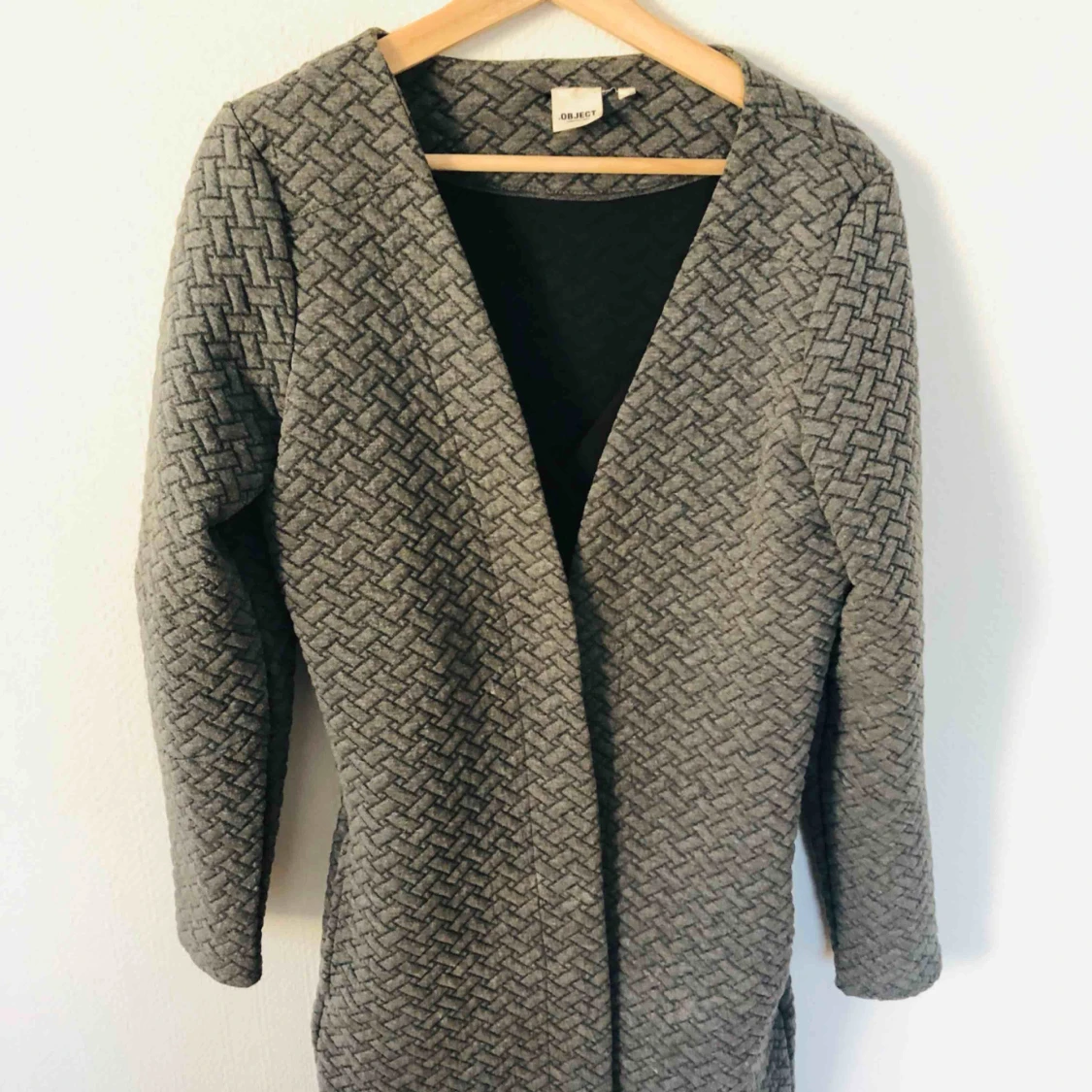Grå lång mönstrad kofta med fickor. Knappt använd. Storlek M