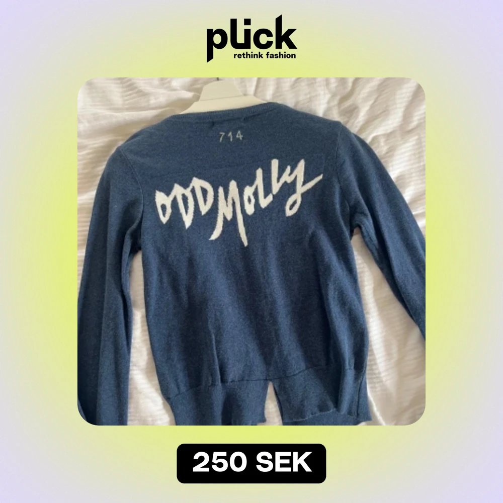 Supersöt blå kofta med knappar och text på ryggen från Odd Molly. Storlek 1 vilket motsvarar S/36. Använd ytterst fåtal gånger och är i fint skick. 250kr.