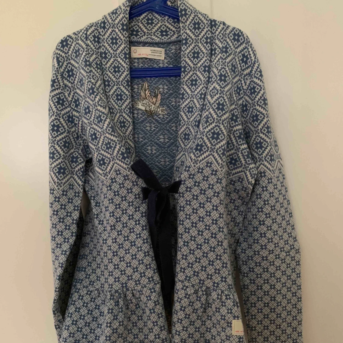 Ljusblå kofta med knyte fram i mitten från Odd Molly, använd ett fåtal gånger.