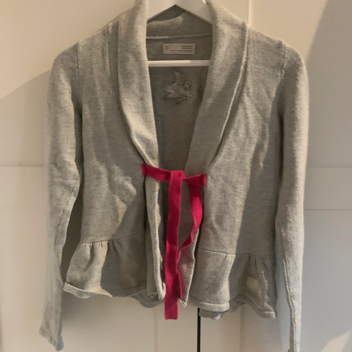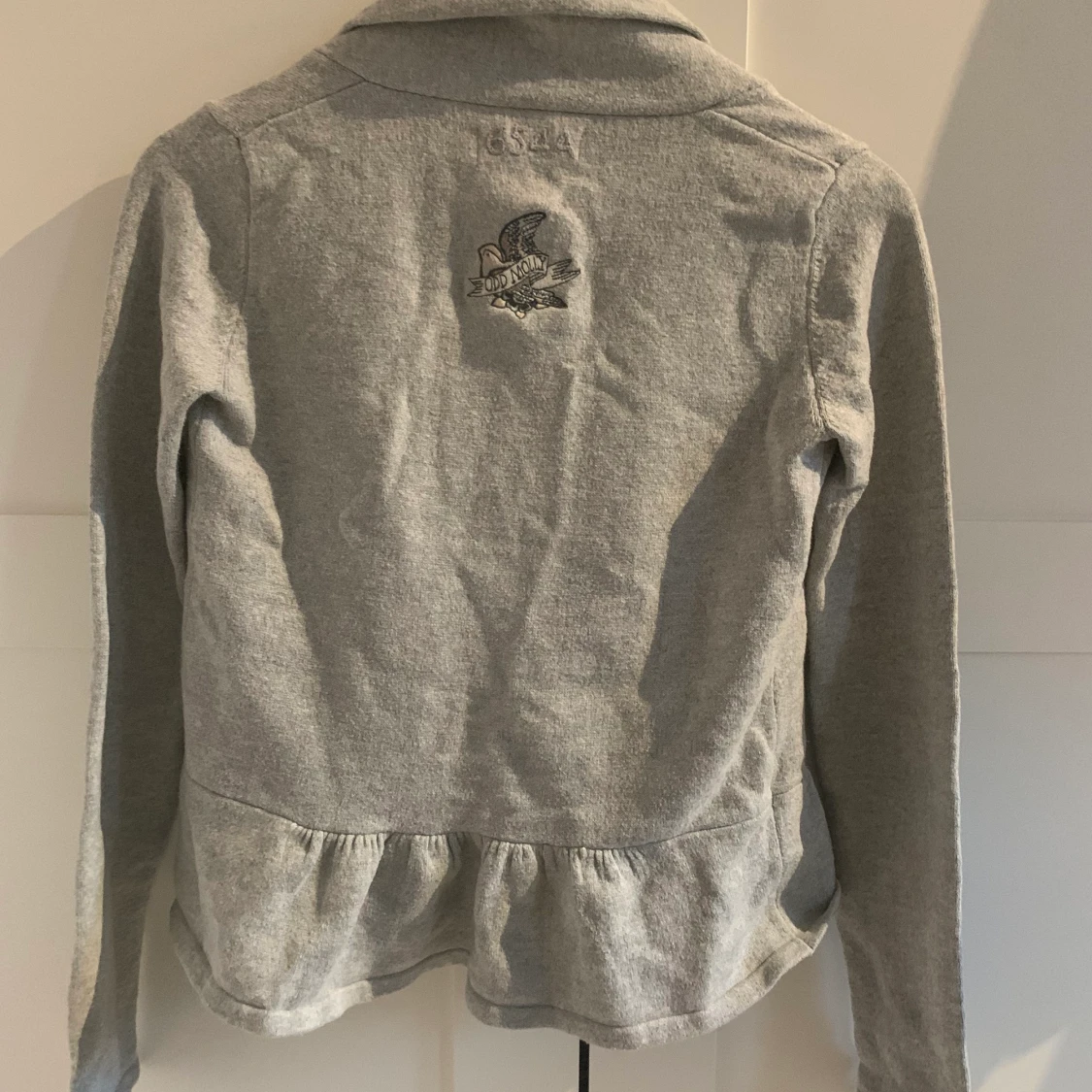 Grå oddmolly kofta med rosa rosett. För liten för mig. Men passar en xs/s. Bra skick. Väldigt söt. Köparen står för frakten. Går att diskutera pris. Köpt för ca 600kr kommer inte riktigt ihåg.