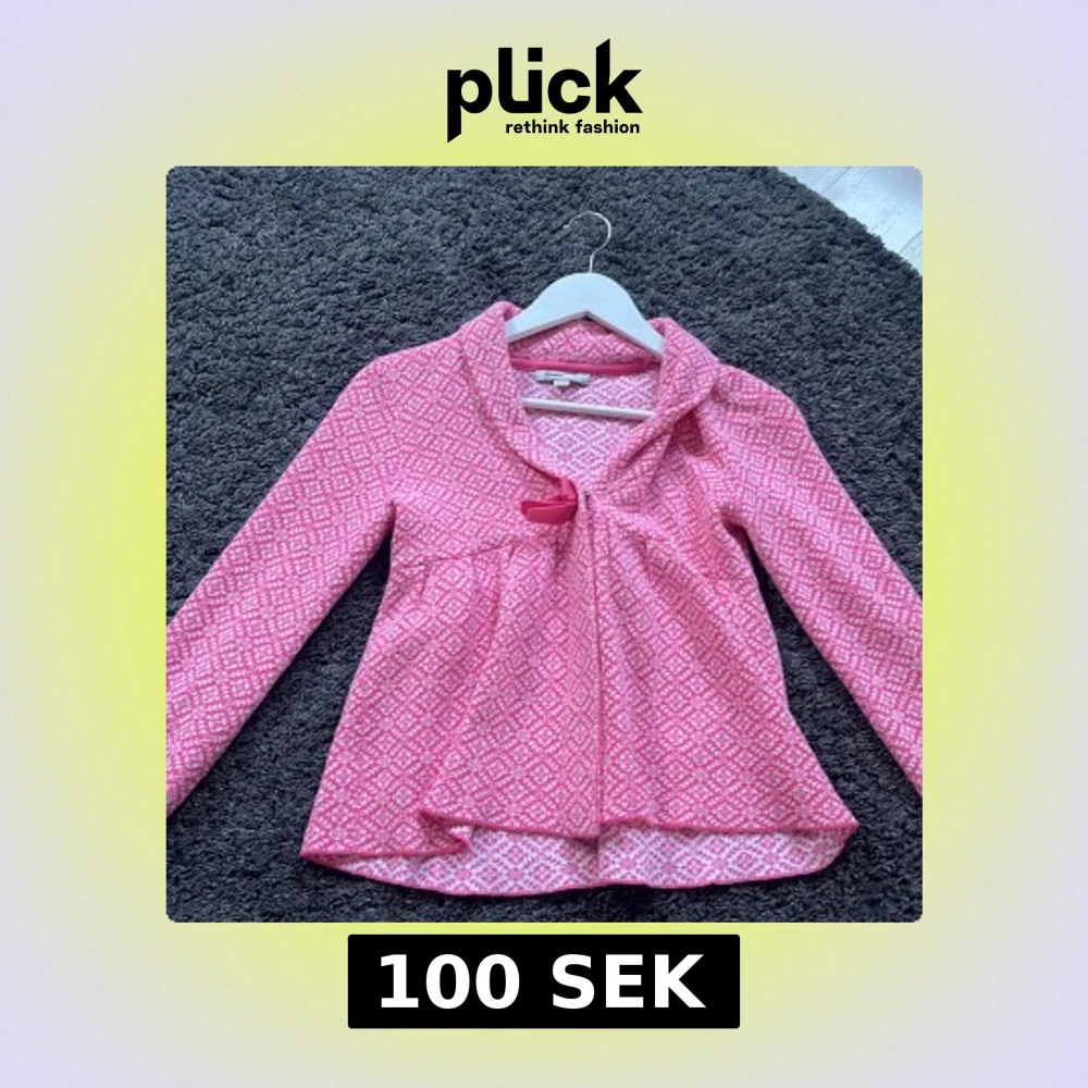 Supersöt rosa och vit stickad kofta från My wear med mönster och en fin rosett framtill. Koftan har lång ärm, lätt utställd passform och mjukt material som känns skönt mot huden. Perfekt för dig som gillar färg och detaljer! Storlek 146/152