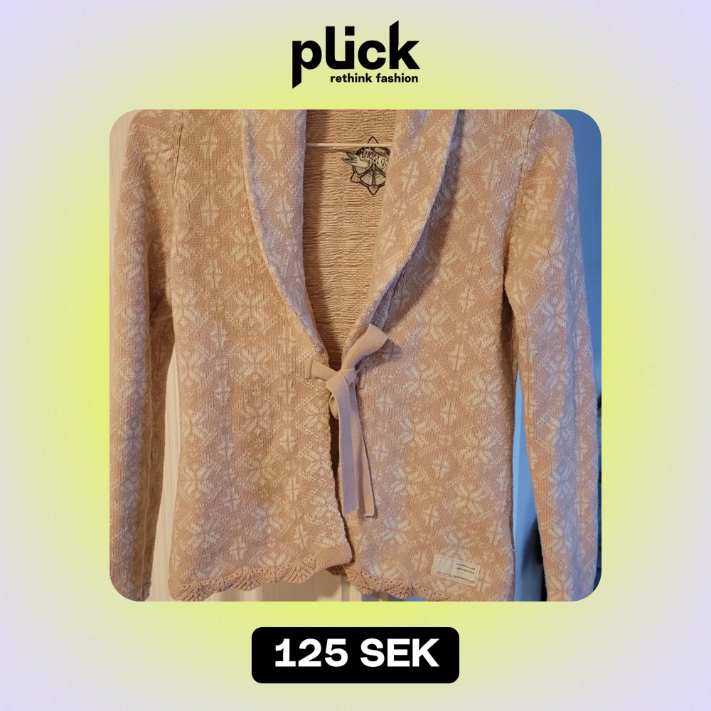 Superfin beige stickad kofta från Odd Molly i storlek XS. Den har ett subtilt mönster och knytband framtill. Perfekt för höst och vår, med långa ärmar och en mysig känsla. Passar både till vardags och lite finare tillfällen. 🧶✨