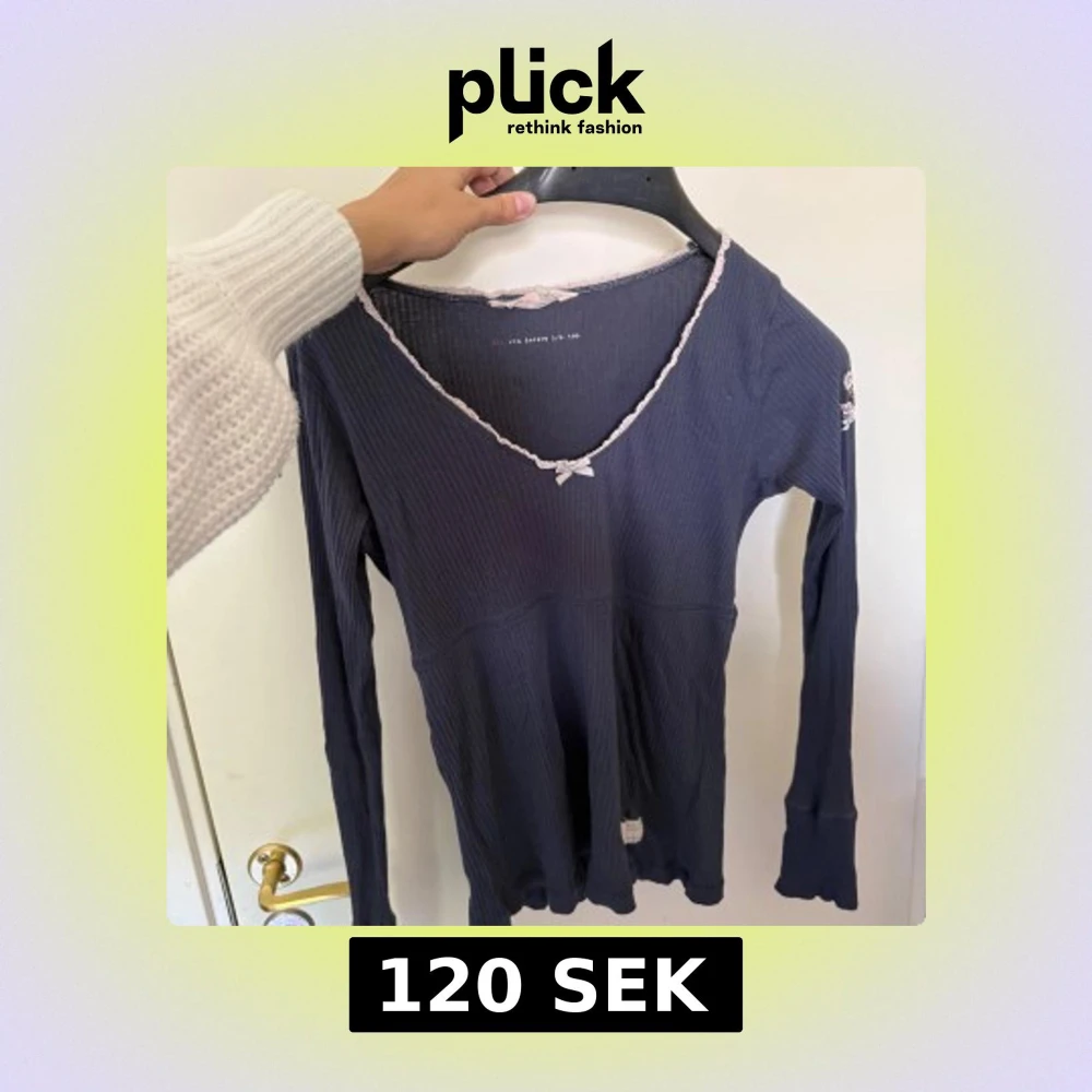Supersöt mörkblå ribbad långärmad topp från Odd Molly med v-ringning, spetskant och liten rosett framtill. Perfekt för dig som gillar romantiska detaljer och mjuka material. Sitter snyggt och är riktigt bekväm.