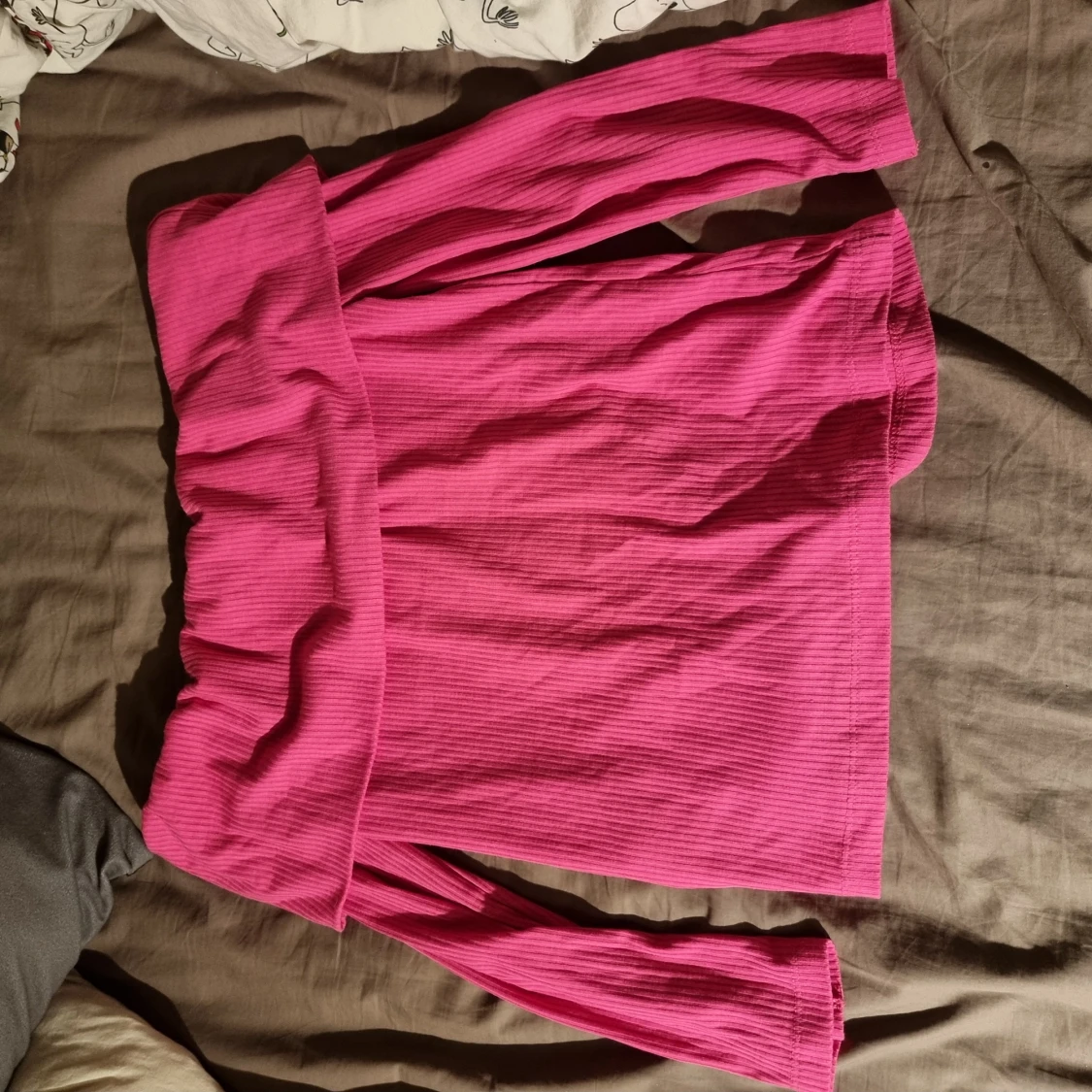 En rosa off-shoulder tröja frĂ„n primark, anvĂ€nd endast en gĂ„ng och i mycket bra skick đ Ăr vĂ€ldigt 2000-tal dĂ„ den har "elbow sleeves" âšïž Mycket skön och stretchig !