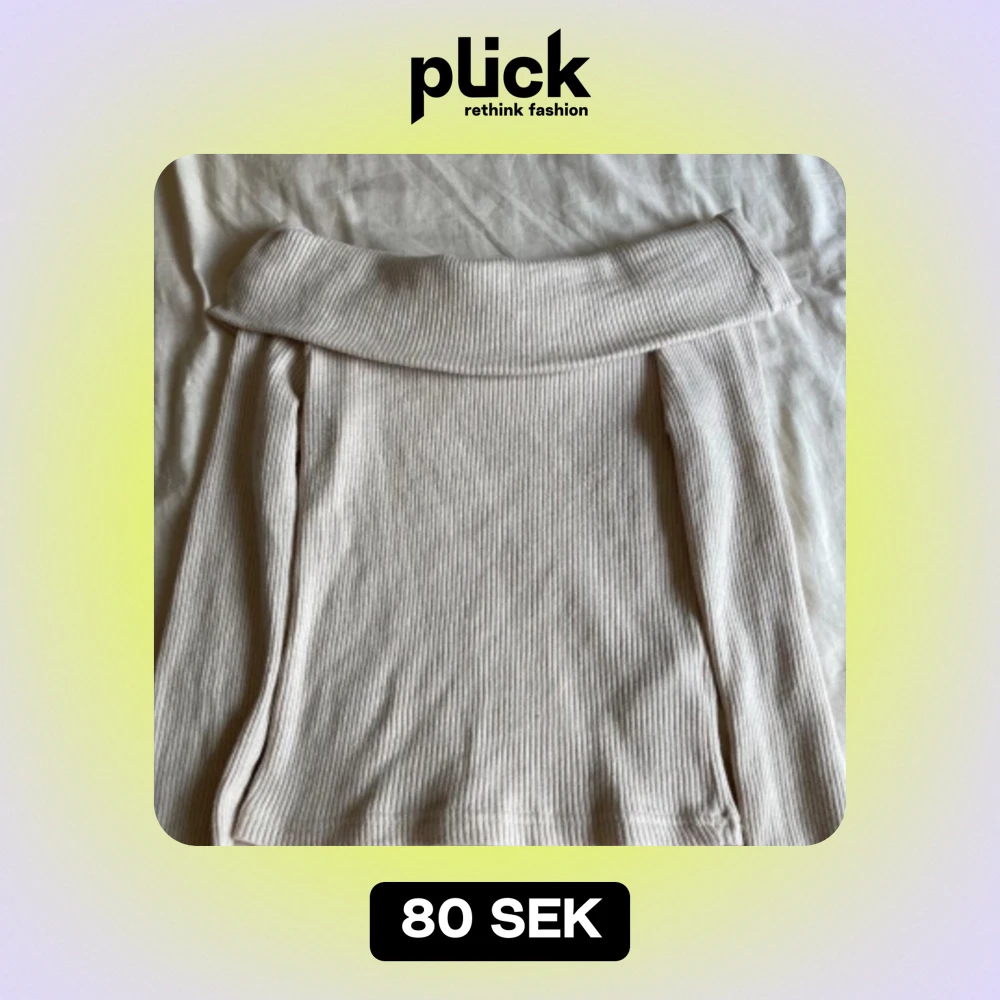 Säljer min beiga ribbade off shoulder tröja från gina tricot. Den är använd 2 gånger och är i nyskick.