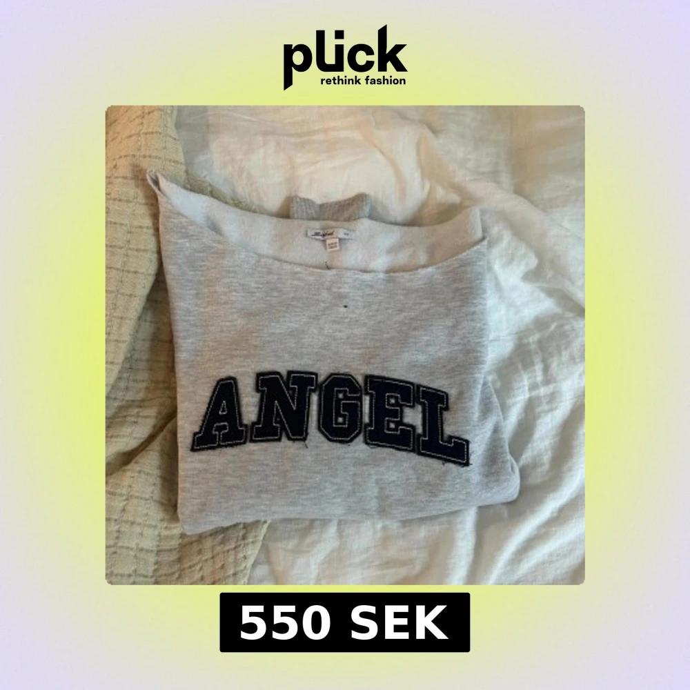 Superfin ljusgrå hoodie från Subdued i storlek XS. Framsidan har ett stort svart ANGEL-tryck och baksidan har svarta vingar. Tröjan är Off shulder och jag köpte den för 700kr så jag säljer den för 550kr. Tröjan är i bra skick och har inte används super mycket därför jag säljer dennn🫶🏼