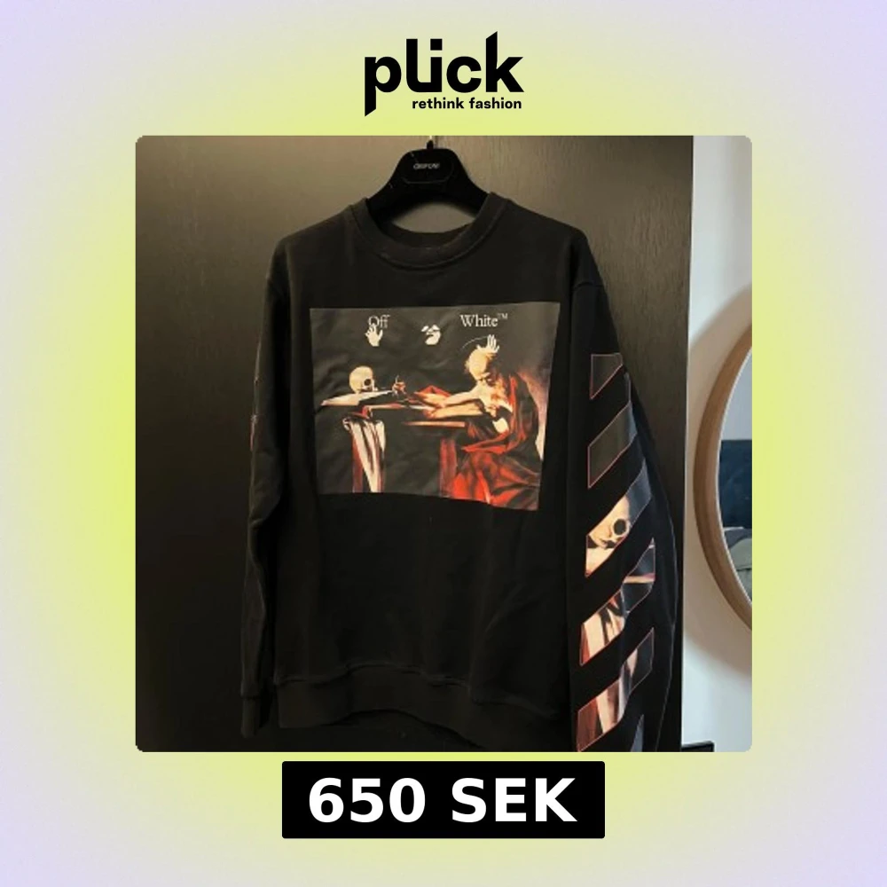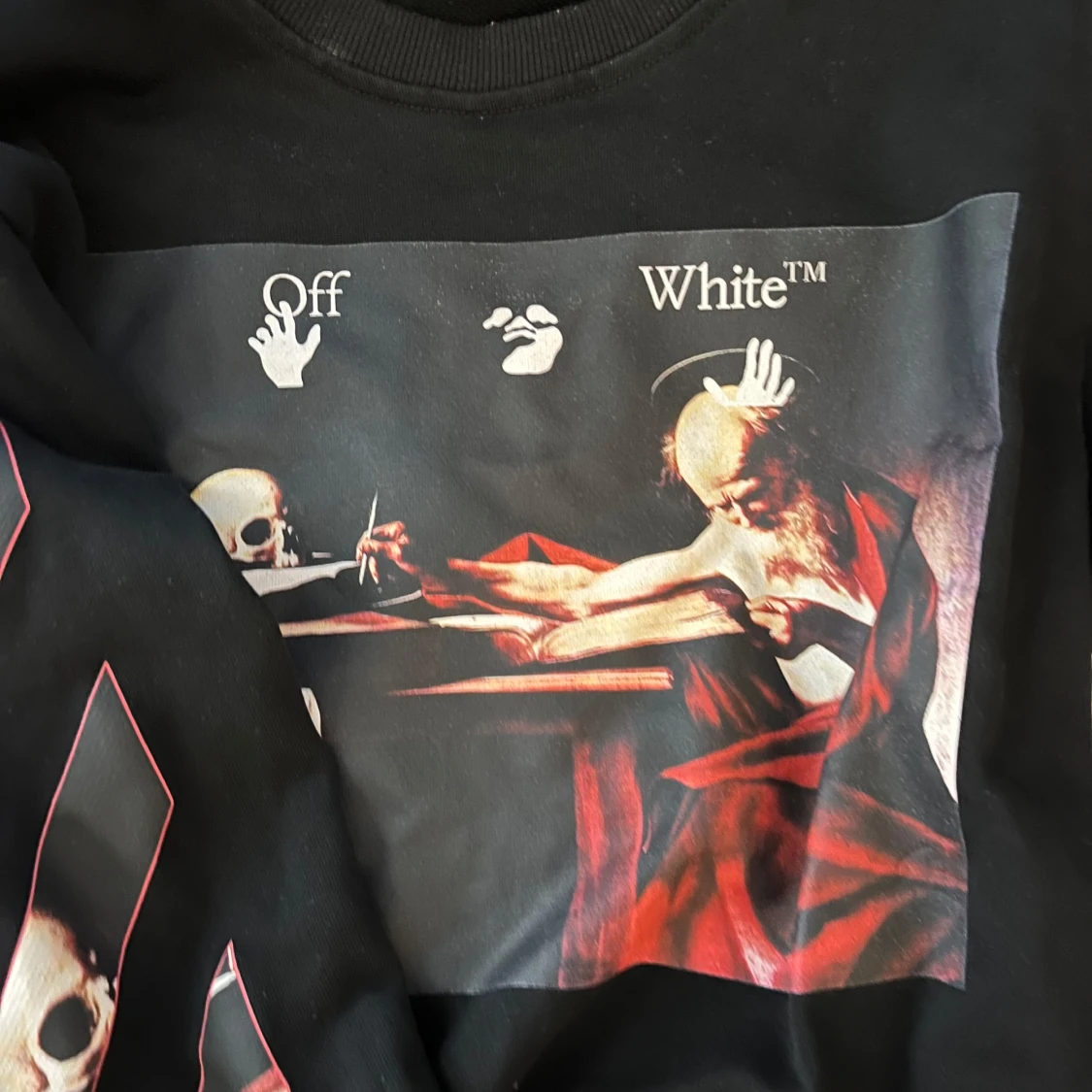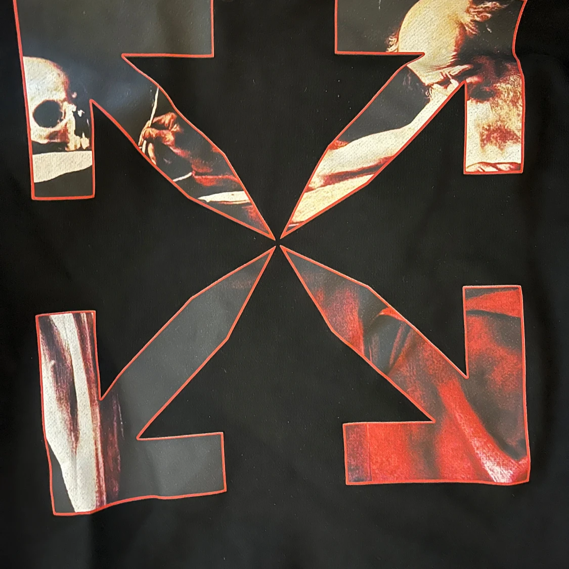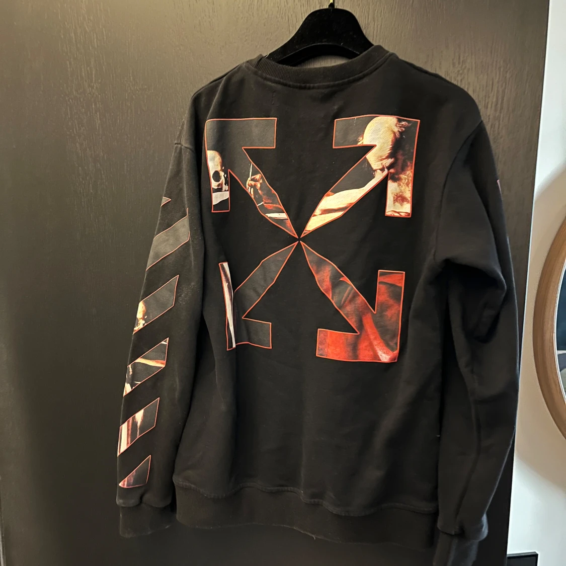 Riktigt stilig sweatshirt från Off White med röt Caravaggio tryck på ryggen, armarna och bröstet. Den är storlek S. Hör av er om ni har frågor eller funderingar.