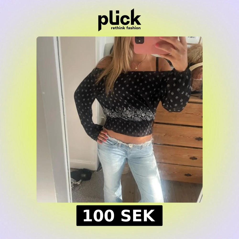Säljer en svart offshoulder blus med vitt paisleymönster och små tryckta detaljer. Blusen har långa ärmar med resår vid handlederna och smockad midja som ger en snygg passform. Pris kan diskuteras!