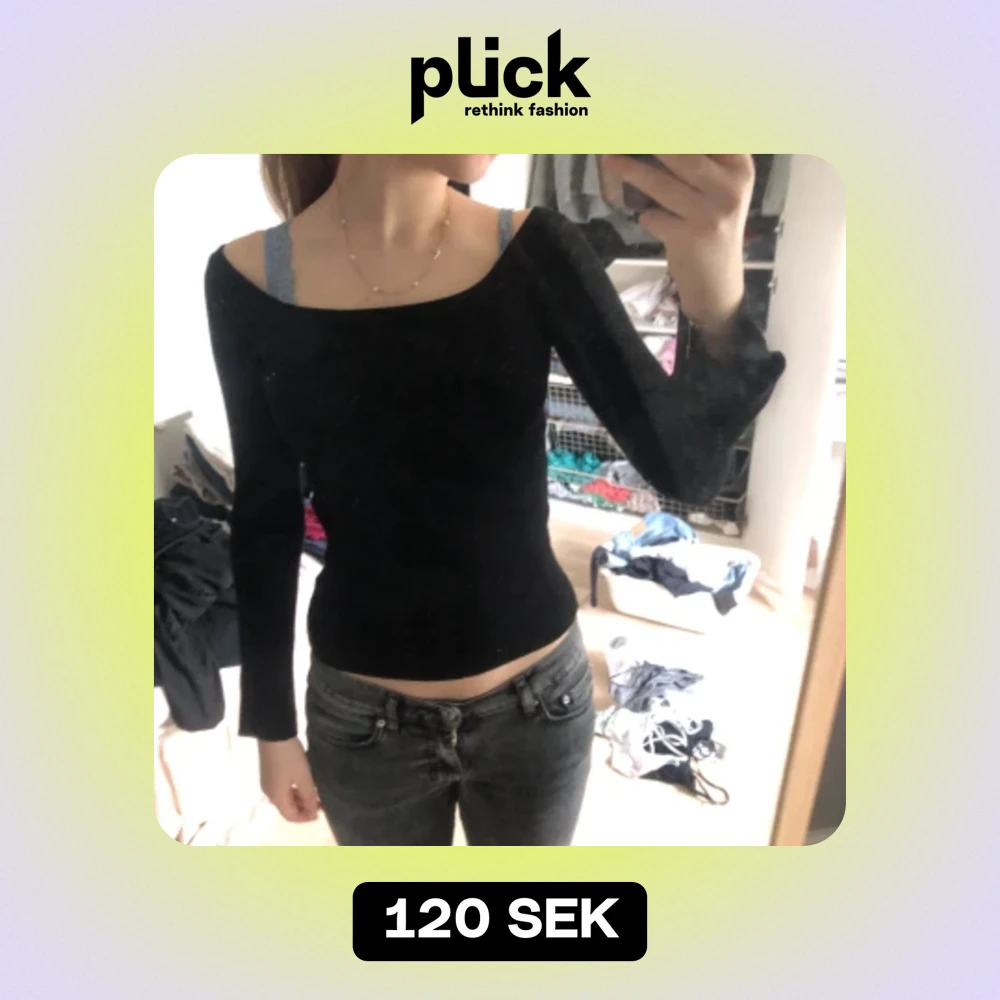 Jättesnygg svart off-sholder tröja med utsvängda armar. Från BikBok men säljs inte längre. Passar XXS-S