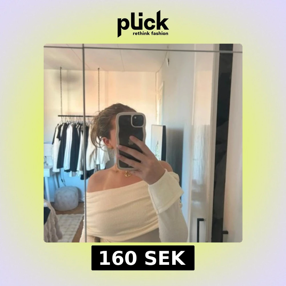 Superfin offshoulder stickad tröja i ljusbeige med långa ärmar. Tröjan har en bred omlottkrage som ger en snygg och trendig look, perfekt för dig som gillar att sticka ut. Mjuk och skön mot huden, passar till jeans eller kjol.