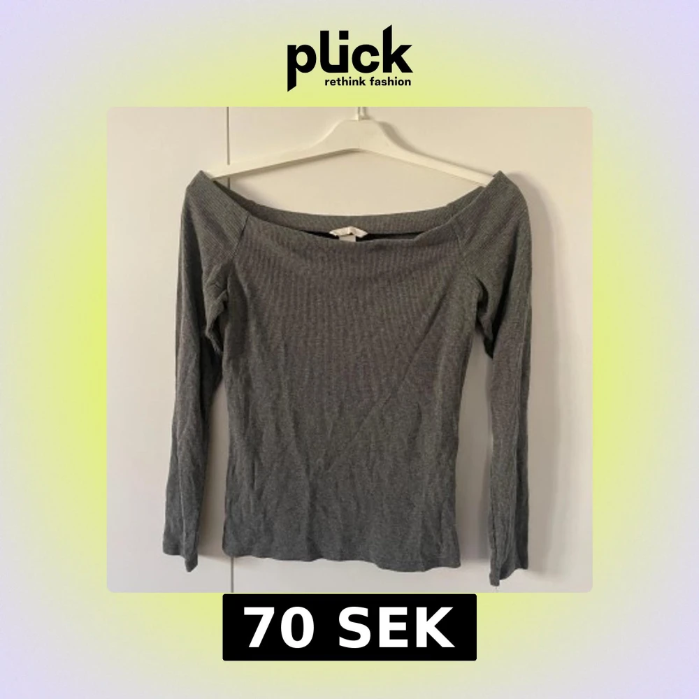 Fin grå ribbad, tight offshoulder topp med långa ärmar. Perfekt för en stilren look. Passar bra till både jeans och kjol.