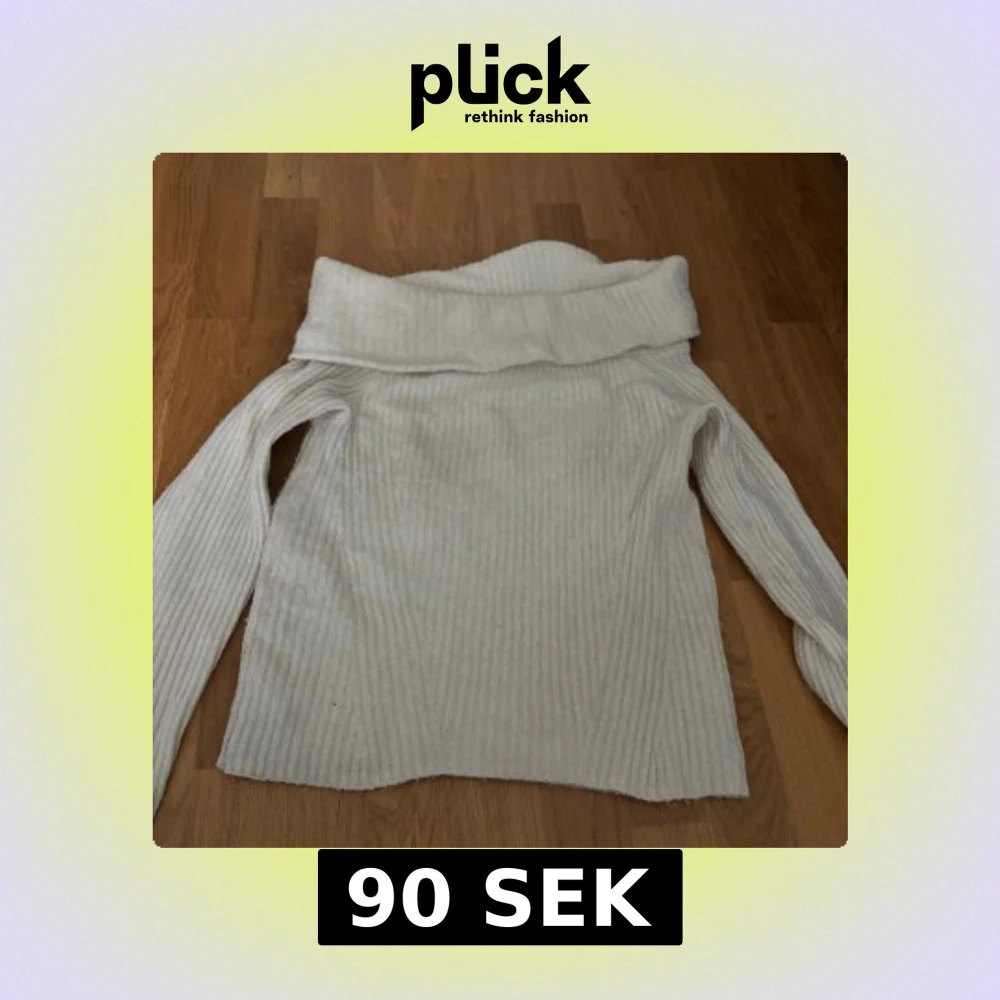 Mysig vit polotröja med bred krage och ribbat stickat material. Tröjan har lång ärm och är perfekt för kyliga dagar. Enkel att matcha med jeans eller kjol för en clean och stilren look.