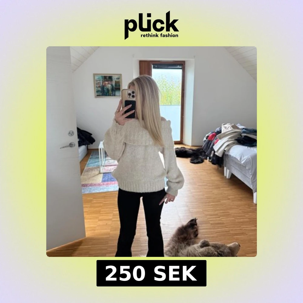 Supermysig stickad offshoulder-tröja från Jina Tricot i beige. Tröjan har bred ribbad kant upptill, ballongärmar och relaxed fit. Perfekt för lager på lager och chill höst- och vinterstil. passar även xs