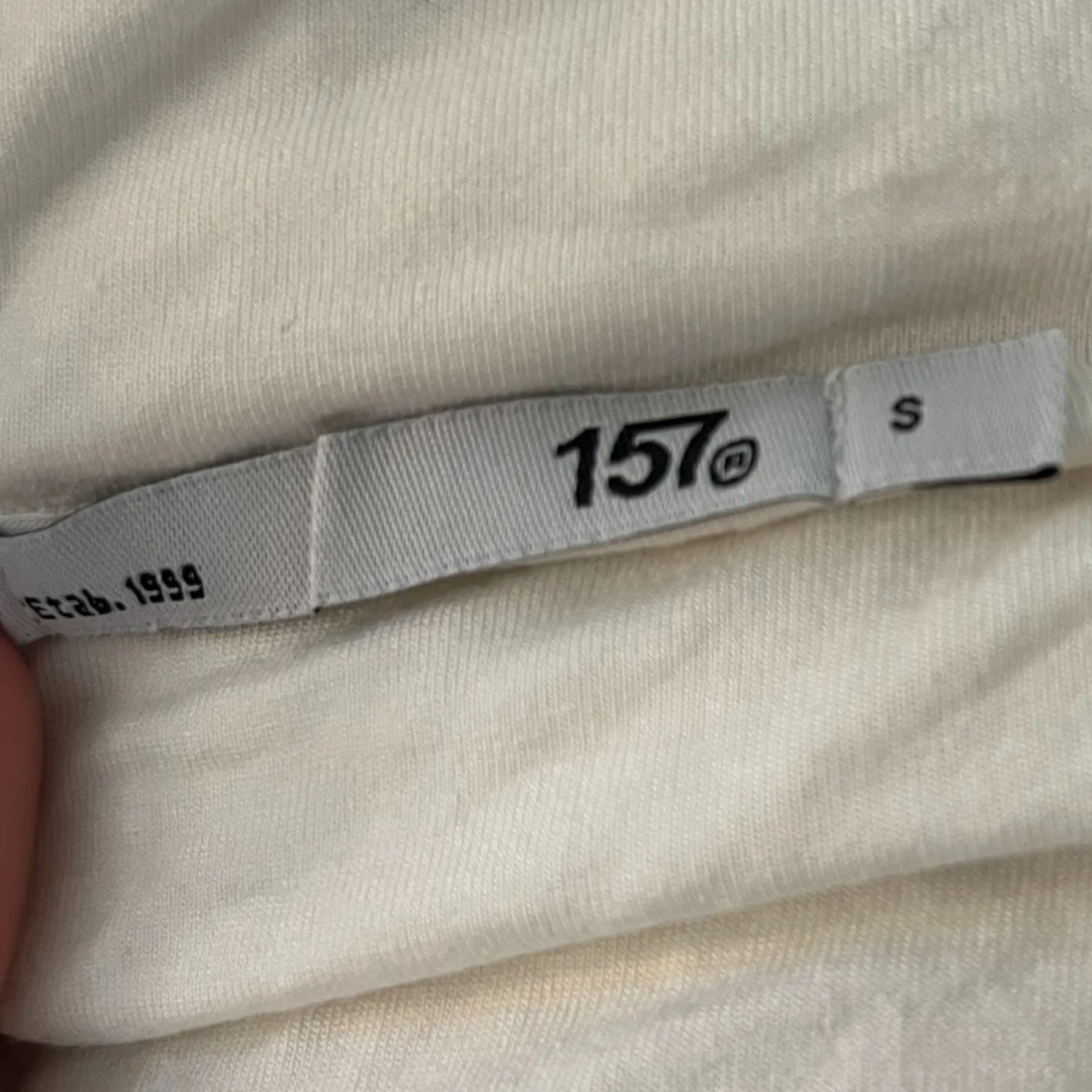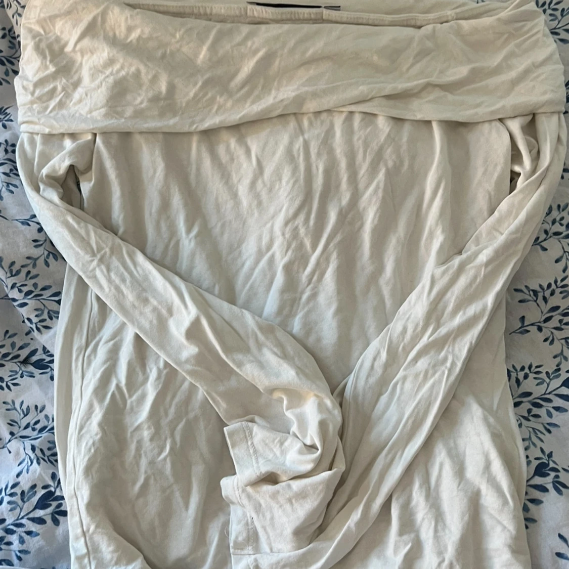 Säljer en vit offshoulder långärmad tröja från 157 i storlek S. Tröjan är gjord i mjuk bomull och har en bred krage som sitter snyggt över axlarna. Perfekt för dig som gillar enkel och clean stil med en twist.