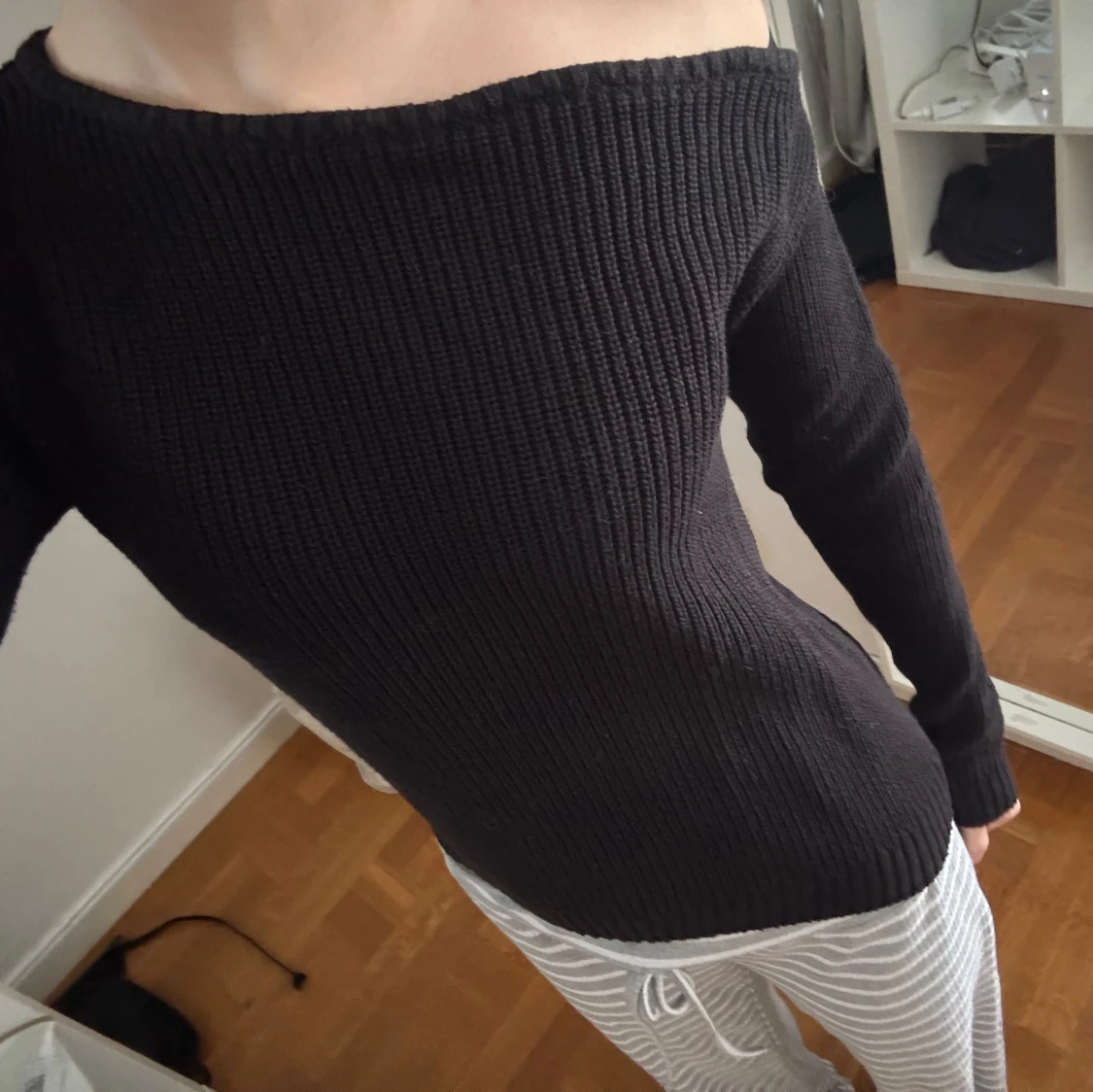Snygg svart offshoulder tröja med ribbad materialđ¶ đZalando
