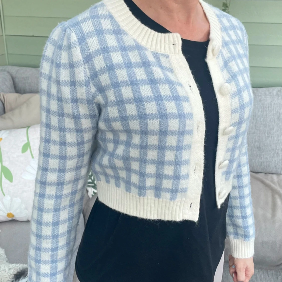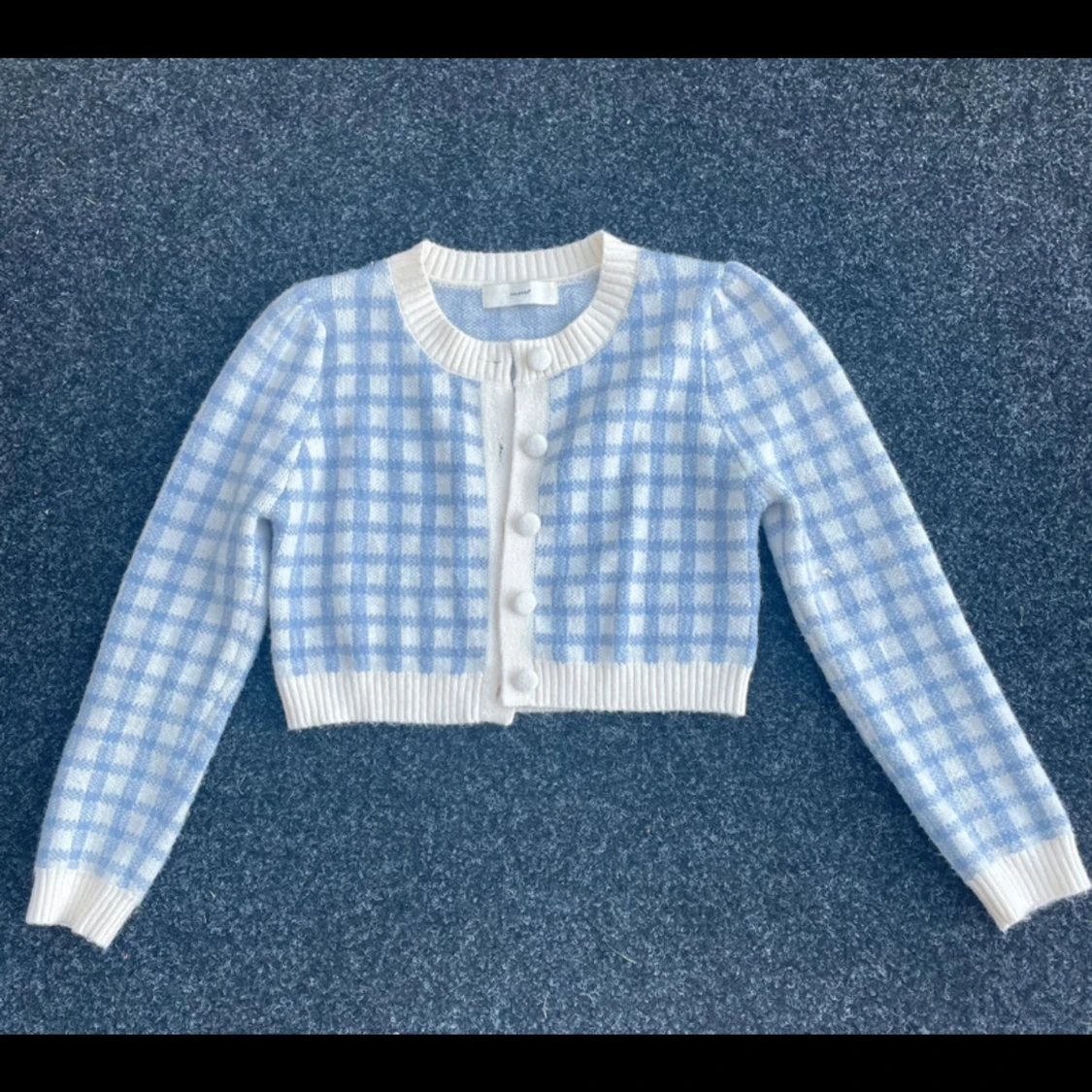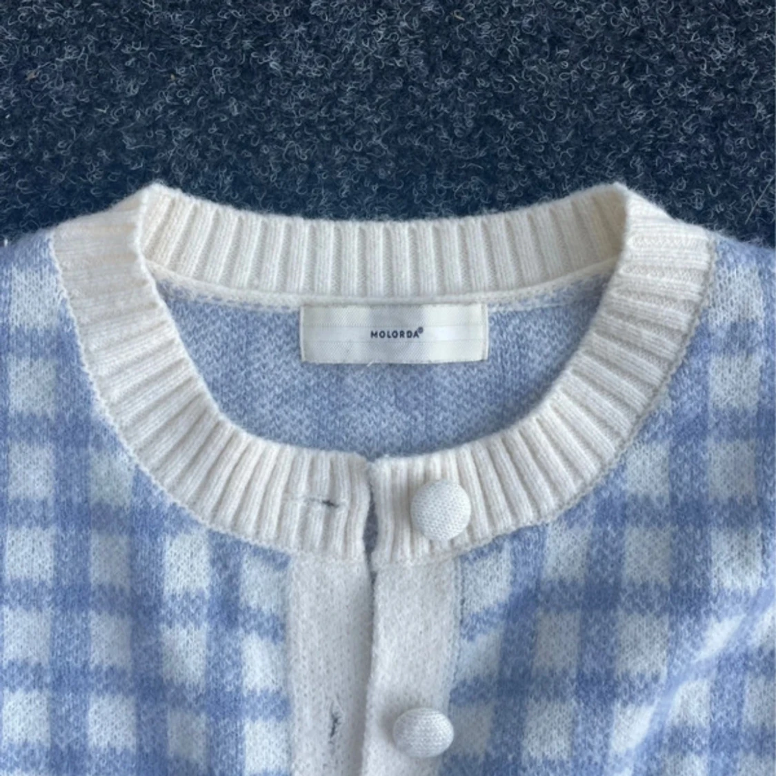 Kofta från Molorda. Blå och vit-rutig. Uppskattar till storlek XS.
