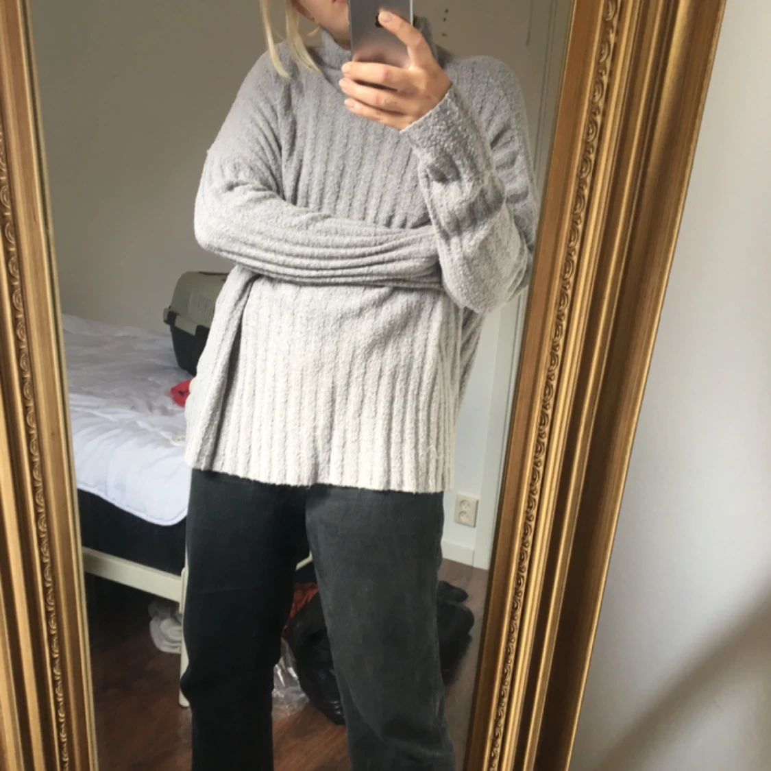 Super mysig, grå stickad tröja! Använd 1-2gånger!