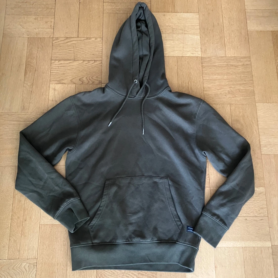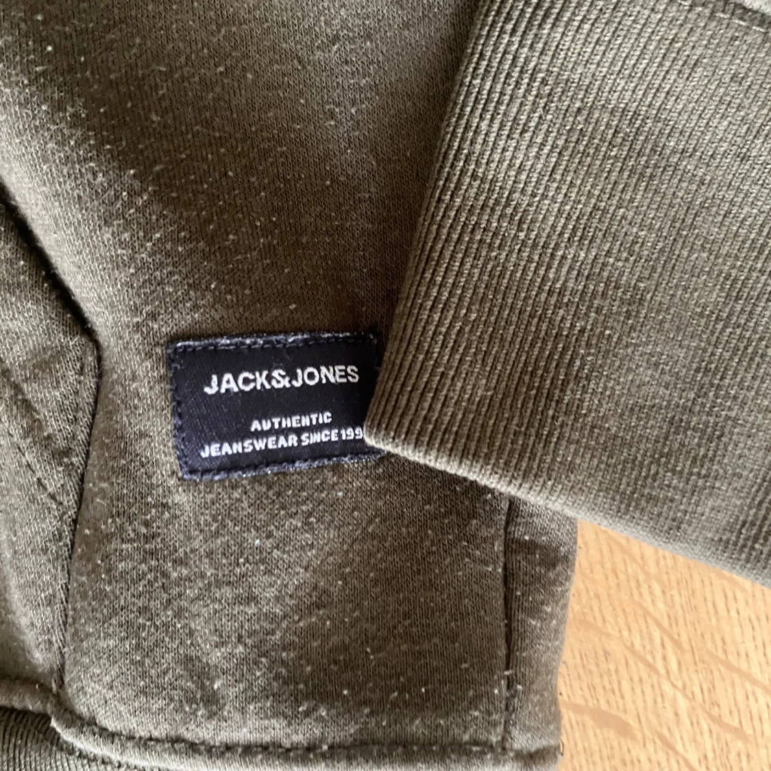 Olivgrön hoodie från Jack & Jones i mjuk bomullsmix. Klassisk modell med huva, snörning och stor magficka framtill. Perfekt för chill dagar och enkel att matcha med jeans eller joggers. Snygg och enkel stil för dig som gillar basic streetwear.