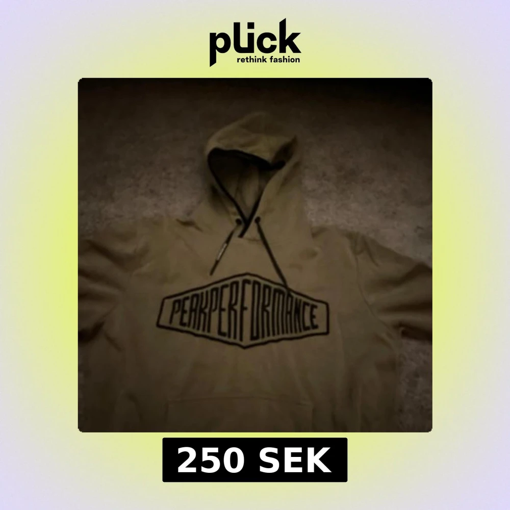 Säljer en olivgrön hoodie från Peak Performance med stor logga på bröstet. Den har en justerbar huva med svarta snören och en klassisk känguruficka framtill. Perfekt för en avslappnad stil.