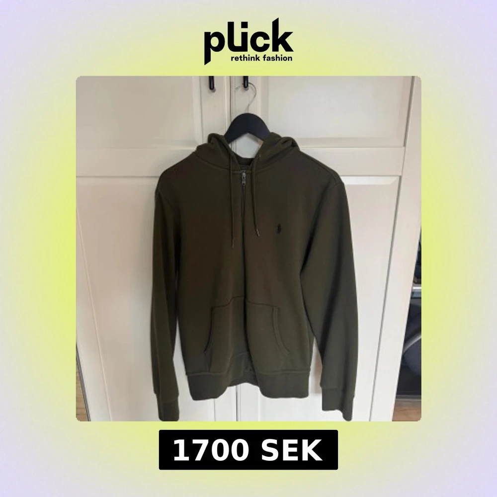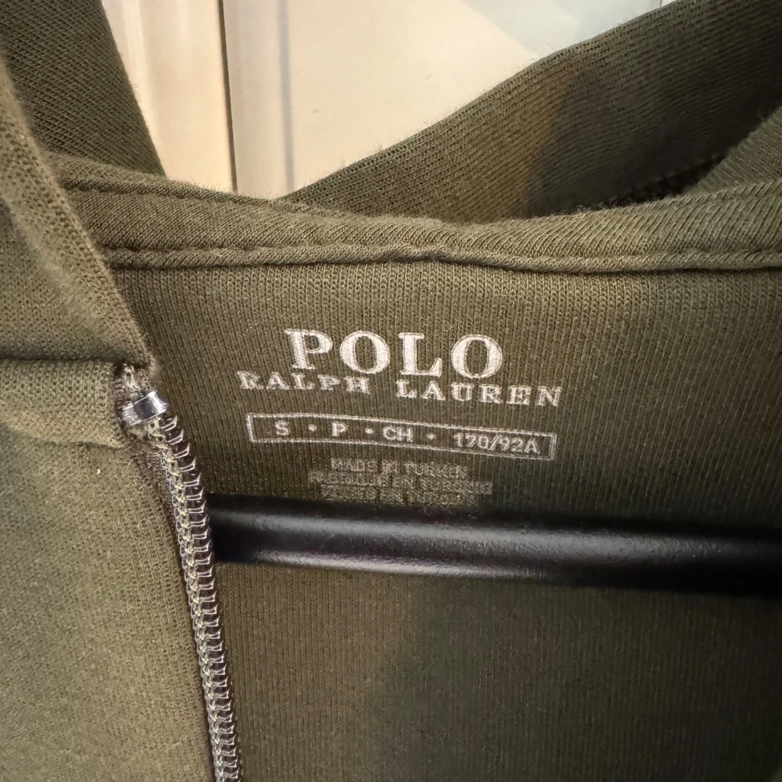 Säljer en olivgrön hoodie från Polo Ralph Lauren med dragkedja och huva. Tröjan har en broderad logga på bröstet och praktiska fickor framtill. Perfekt för en avslappnad stil. Kvitto finns, Använd 4-5 gånger. Byxorna är M. PM vid frågor.
