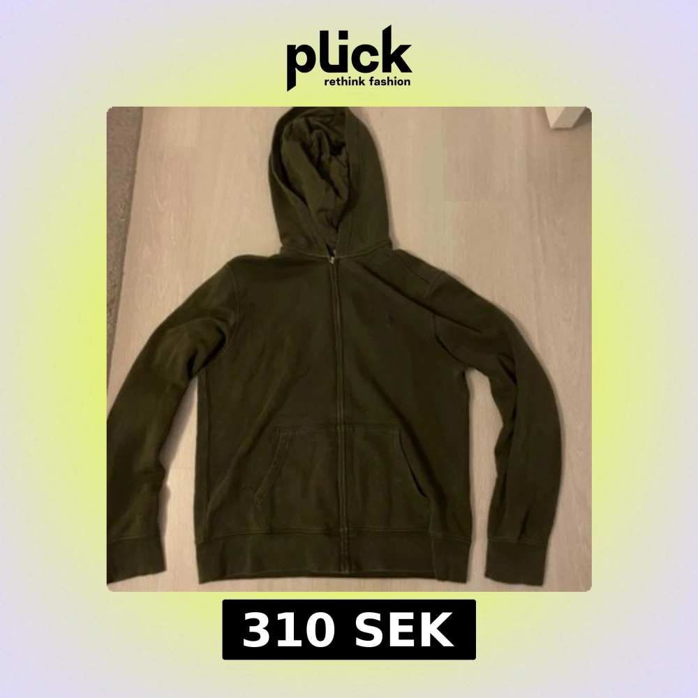 Olivgrön hoodie från Polo Ralph Lauren med dragkedja och klassisk broderad logga på bröstet. Tröjan har huva, känguruficka och är tillverkad i mjuk bomullsmix. Perfekt för chill dagar och snygg streetstyle.L 14-16 passar mellan 150-164 cm