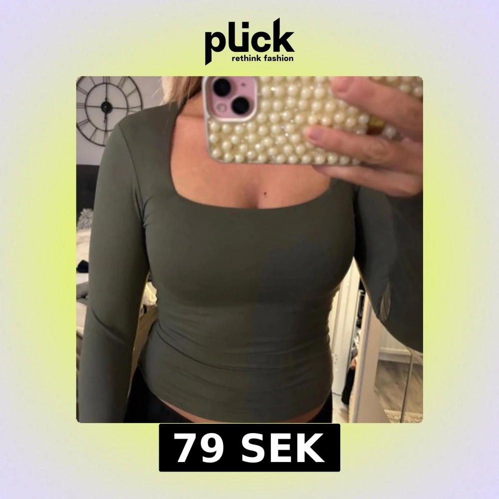 Snygg olivgrön långärmad topp med fyrkantig halsringning. Helt ny med prislapp