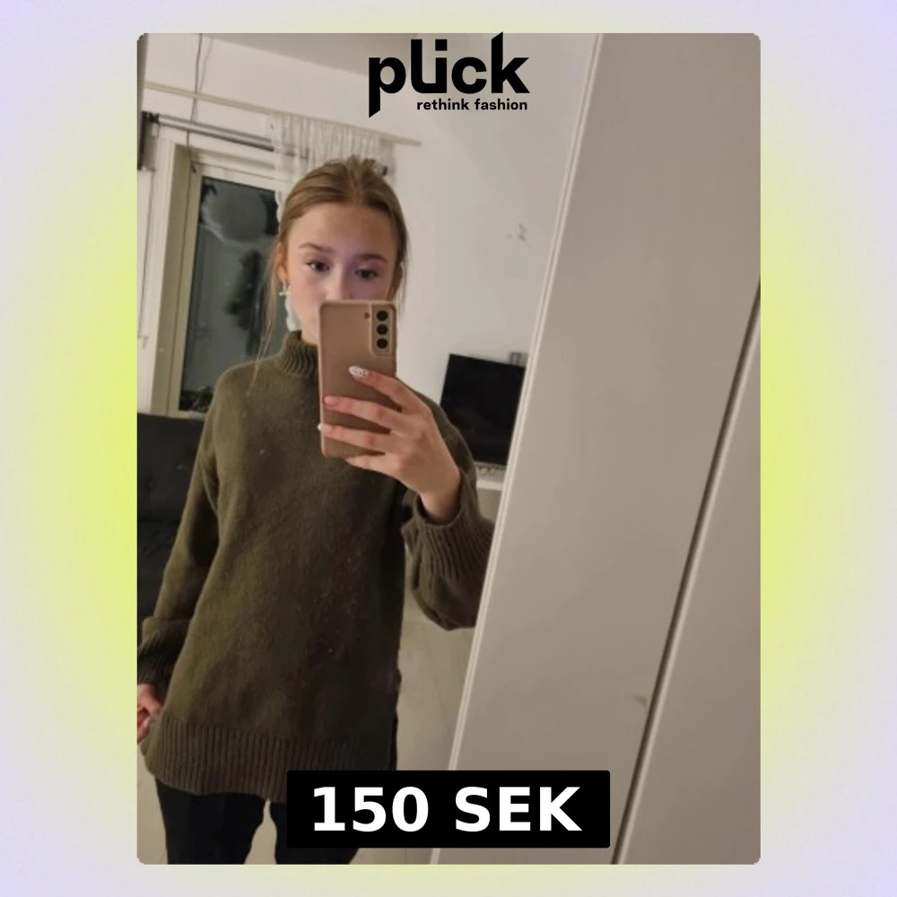 Storlek xxs men sitter som xs/s .Säljer en olivgrön stickad polotröja med ribbad hög krage och breda muddar vid ärmslut och nederkant. Tröjan är långärmad och har en loose passform, perfekt för att hålla sig varm under kyliga dagar. Materialet är mjukt och känns riktigt skönt mot huden.