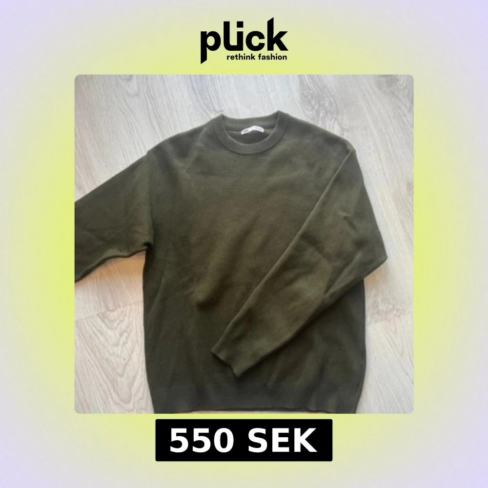 Snygg olivgrön stickad tröja från Zara i klassisk modell med rund halsringning och ribbade muddar. Perfekt för lager-på-lager och passar till både jeans och kjol. Enkel och stilren design som funkar året runt.