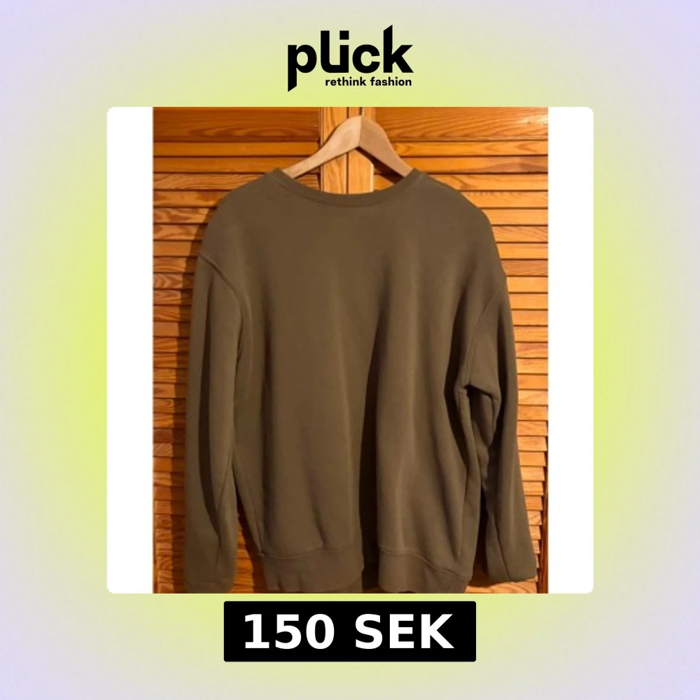 Säljer en stilren olivgrön sweatshirt med rund hals och långa ärmar. Perfekt för en avslappnad look. Passar bra till både jeans och joggers.
