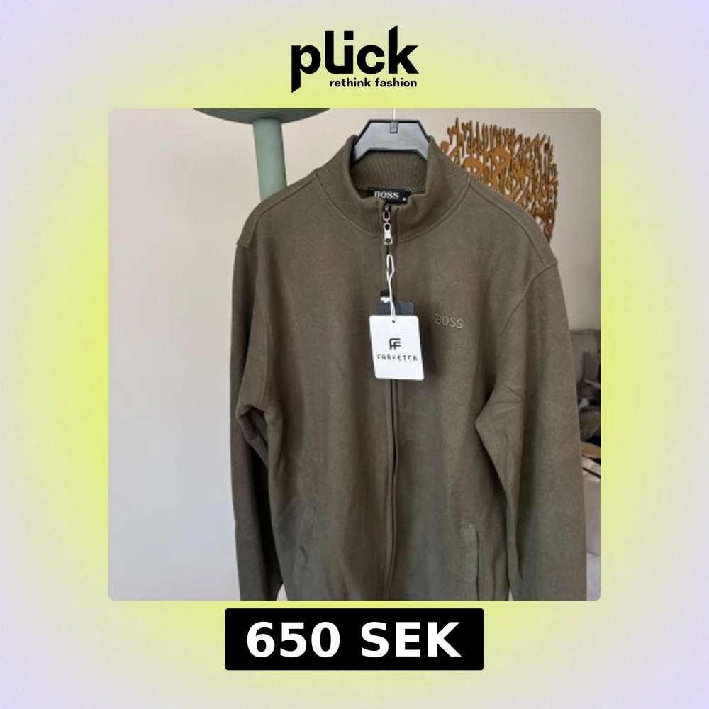 Snygg olivgrön tröja från Boss med dragkedja och ribbad krage. Perfekt för en stilren look. Passar bra till både jeans och chinos. På verkligheten ser det finare ut än bilder