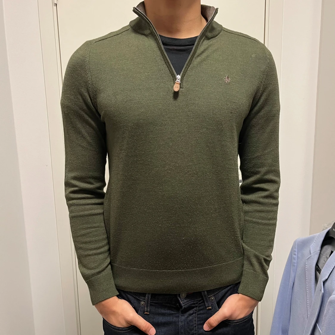 Snygg olivgrön tröja från Morris i 100% merinoull. Lite kort på mig som är 184, rekommenderas för dig som är 175-180. Nypris 1799, mitt pris 499