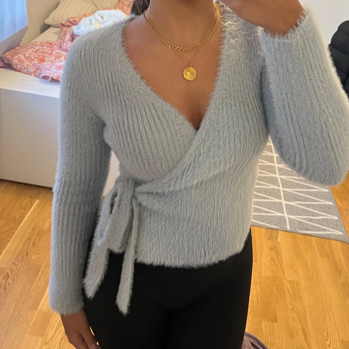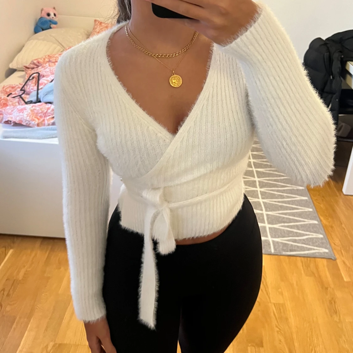 Supermysig omlott kofta med knyt i midjan och v-ringning. Finns i både vit och ljusgrå färg BÅDA säljs för 250!!!. Koftan är stickad och har lång ärm, perfekt för lager-på-lager och chill outfits. Den fluffiga känslan gör den extra cozy under kyliga dagar.