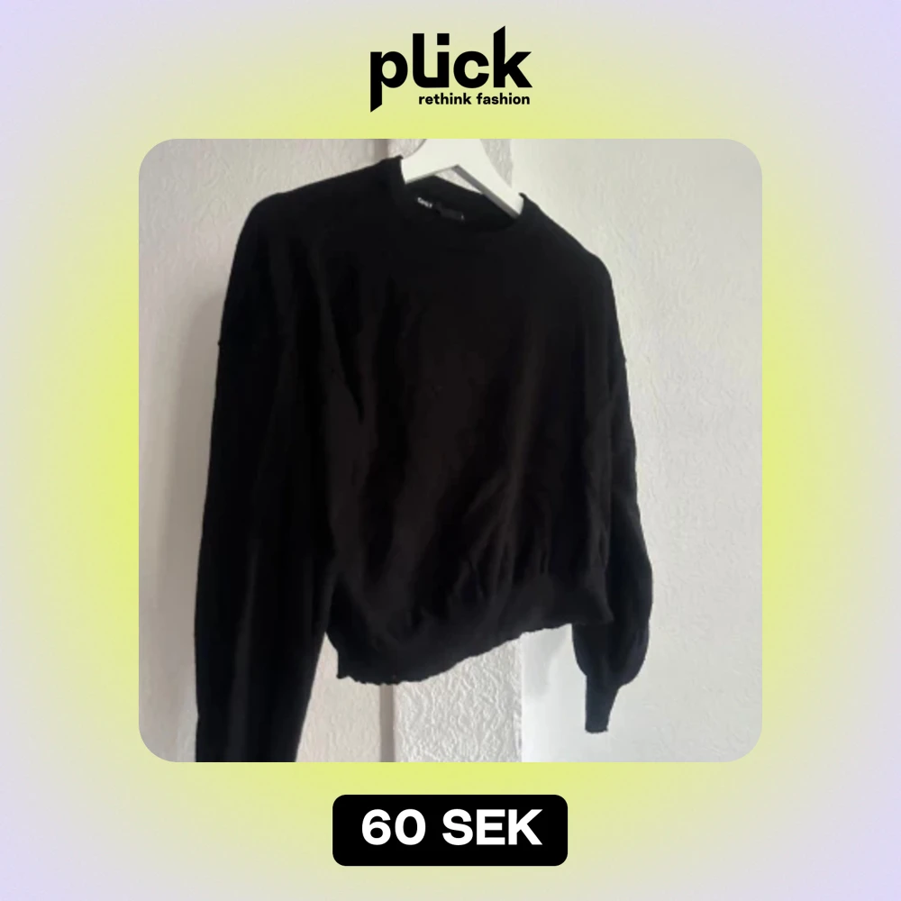 En fin svart kortare tröja i storlek L från Only. Men skulle säga att den passar M och även S då den är lite liten.