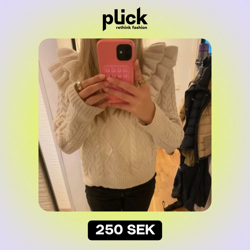 Säljer denna jättefina tjocktröjan i krämvit med massa fina volanger och mönster.🤍 Köpt från ONLY i storlek S. Perfekt nu till hösten!! Skriv för fler bilder eller frågor. Pris kan diskuteras 🤍🤍
